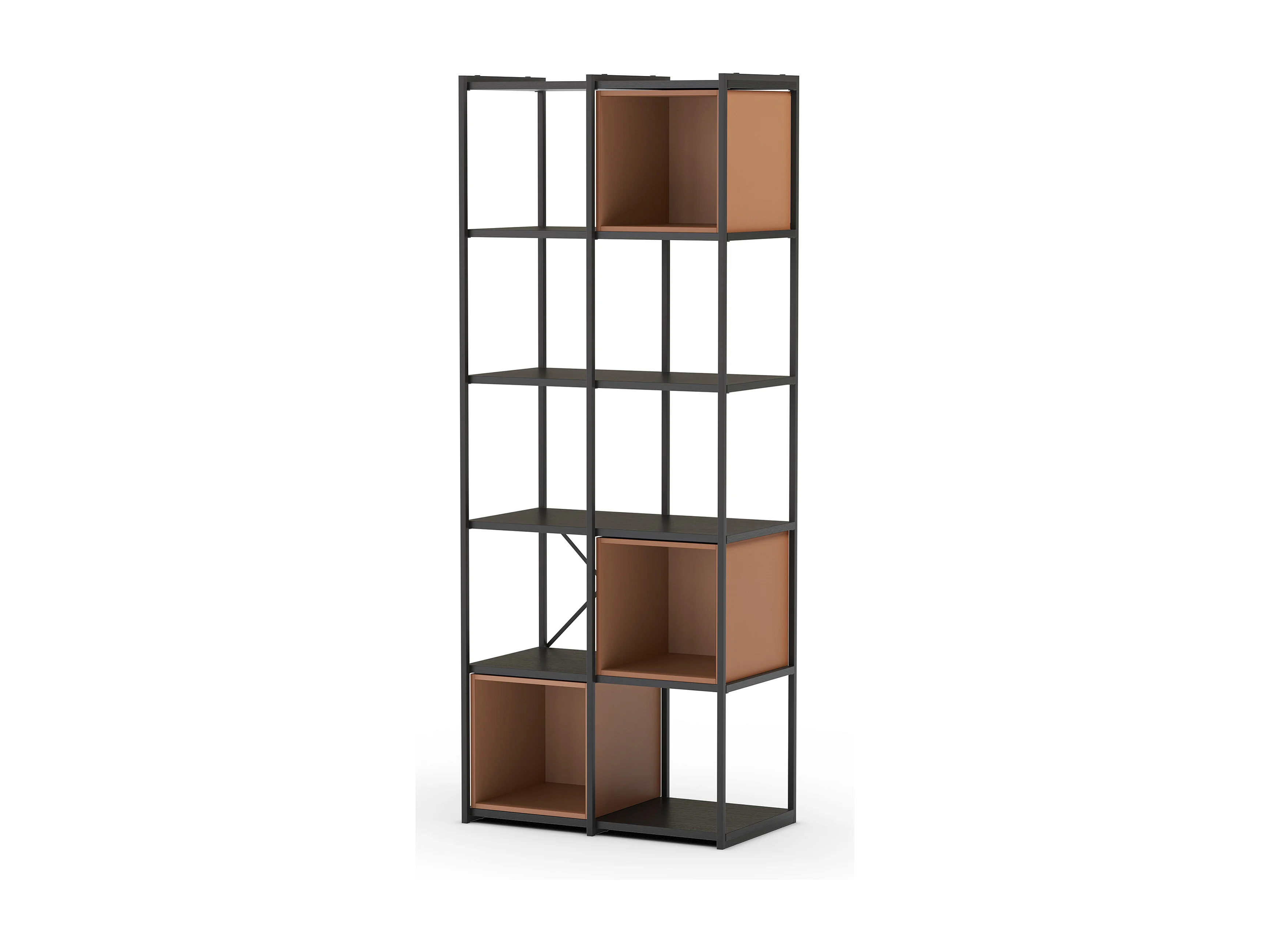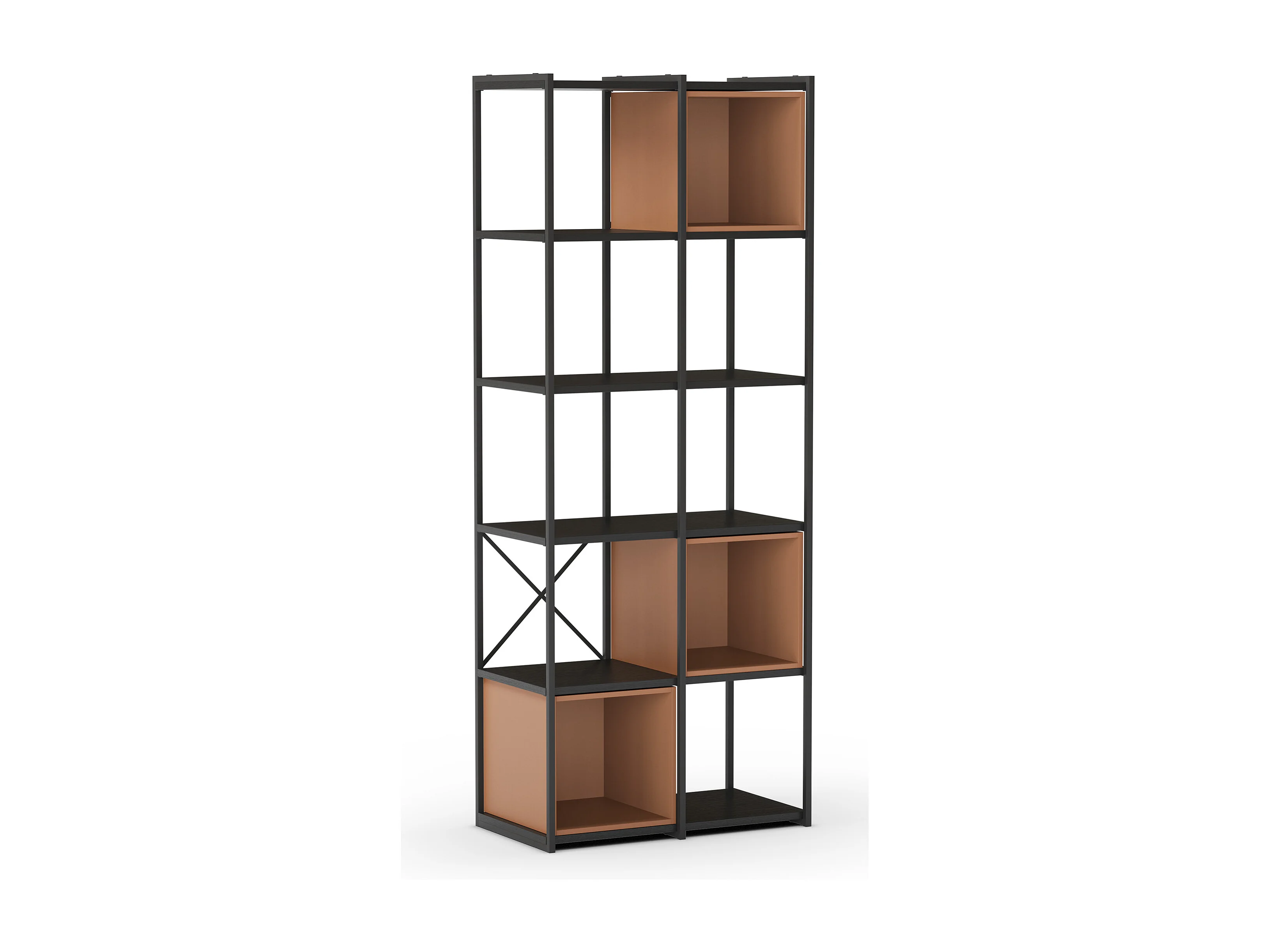 Etagère haute, meuble étagère aspect bois coloris terracotta et métal noir - Longueur 70 x Profondeur 39 x Hauteur 179 cm