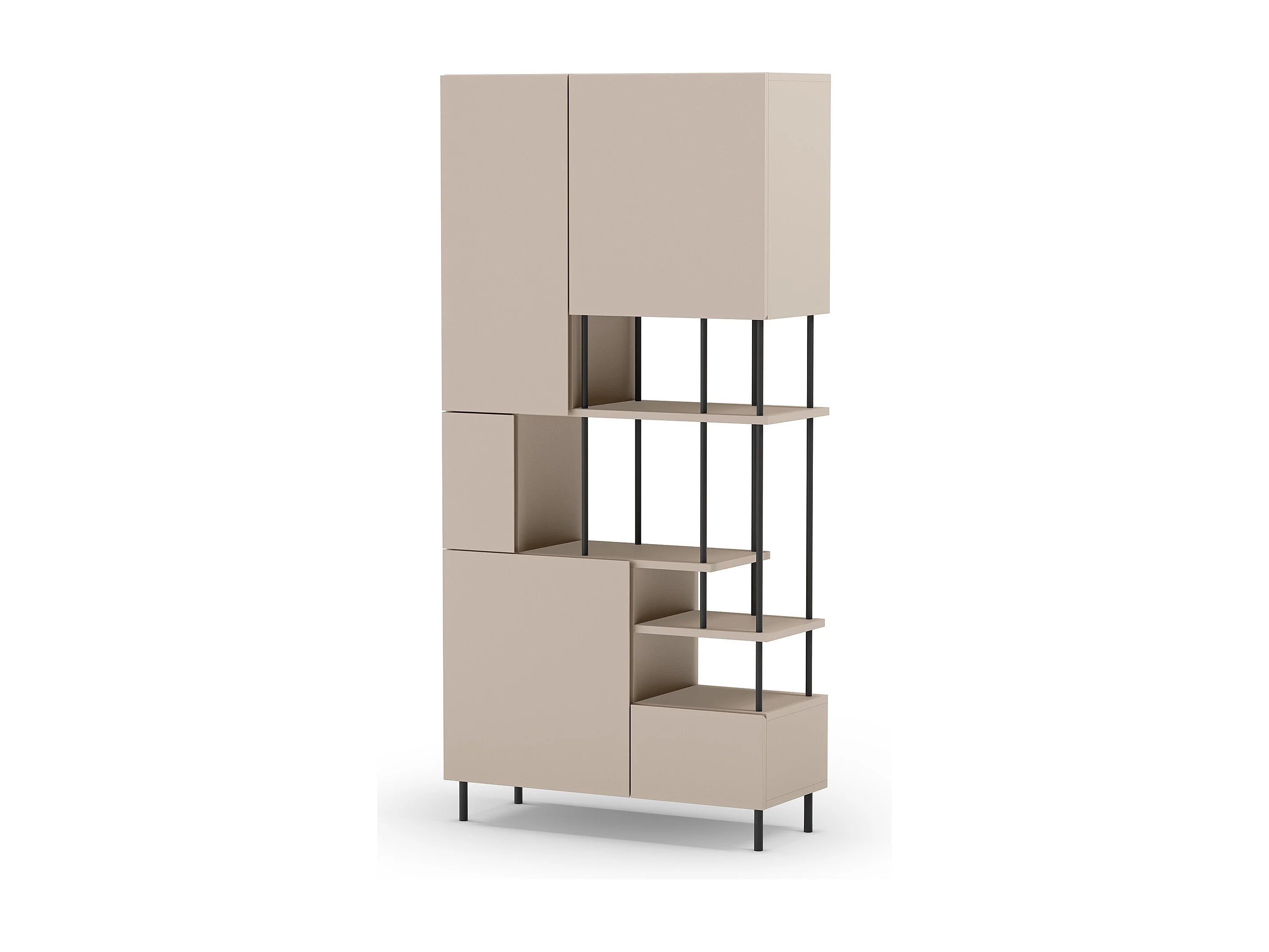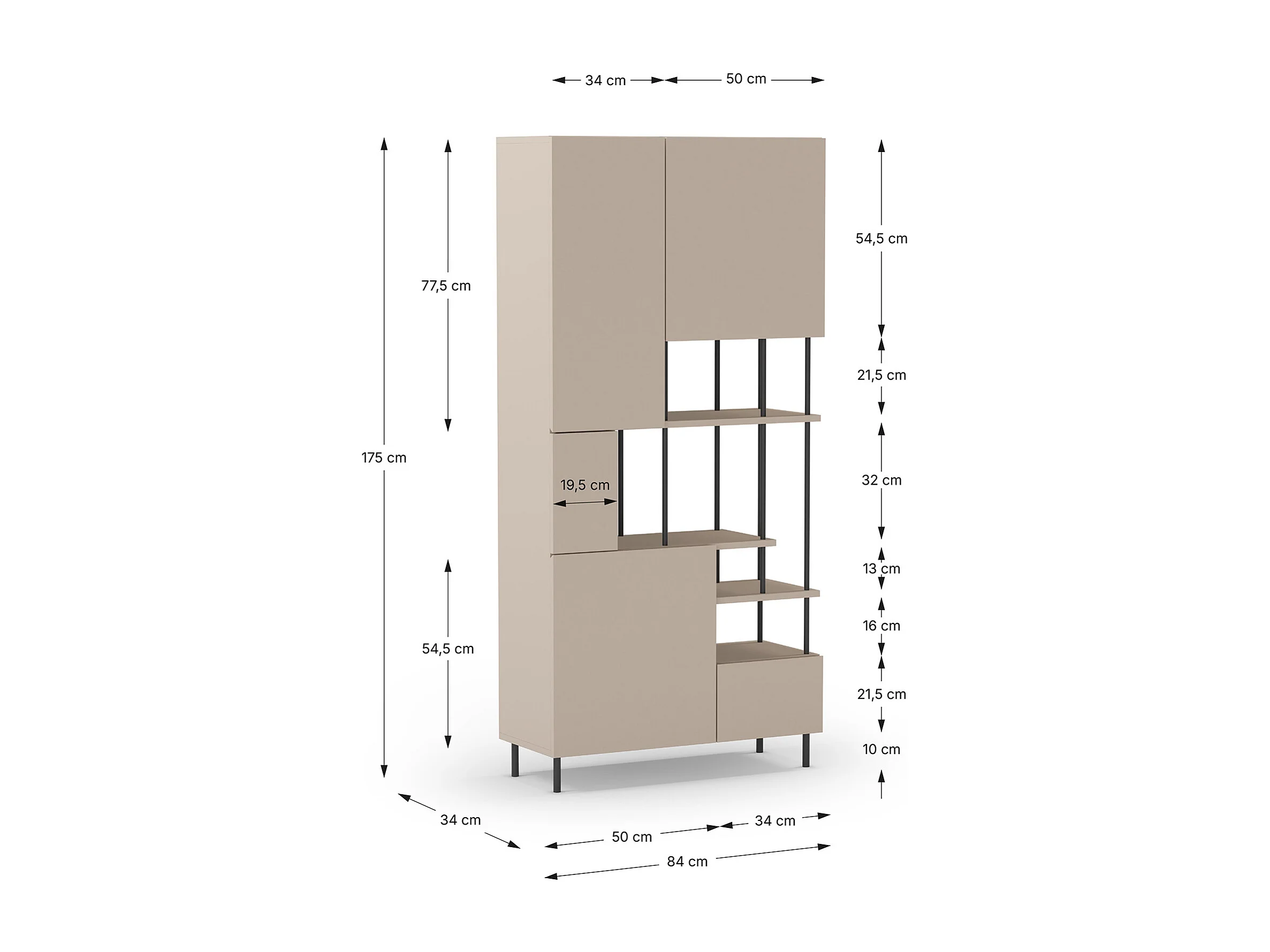 Etagère haute, meuble étagère avec 5 portes aspect bois coloris crème, pieds en métal noir - Longueur 84 x Profondeur 34 x Hauteur 175 cm