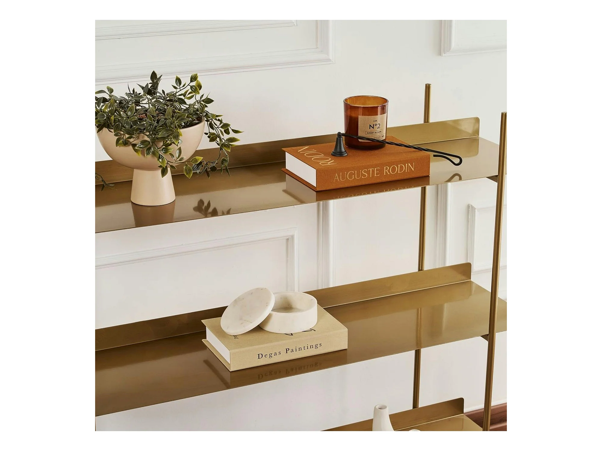 Bibliothèque Almena, Etagère de bureau, Porte-livre mobile, Librairie, 125x28h180 cm, Or