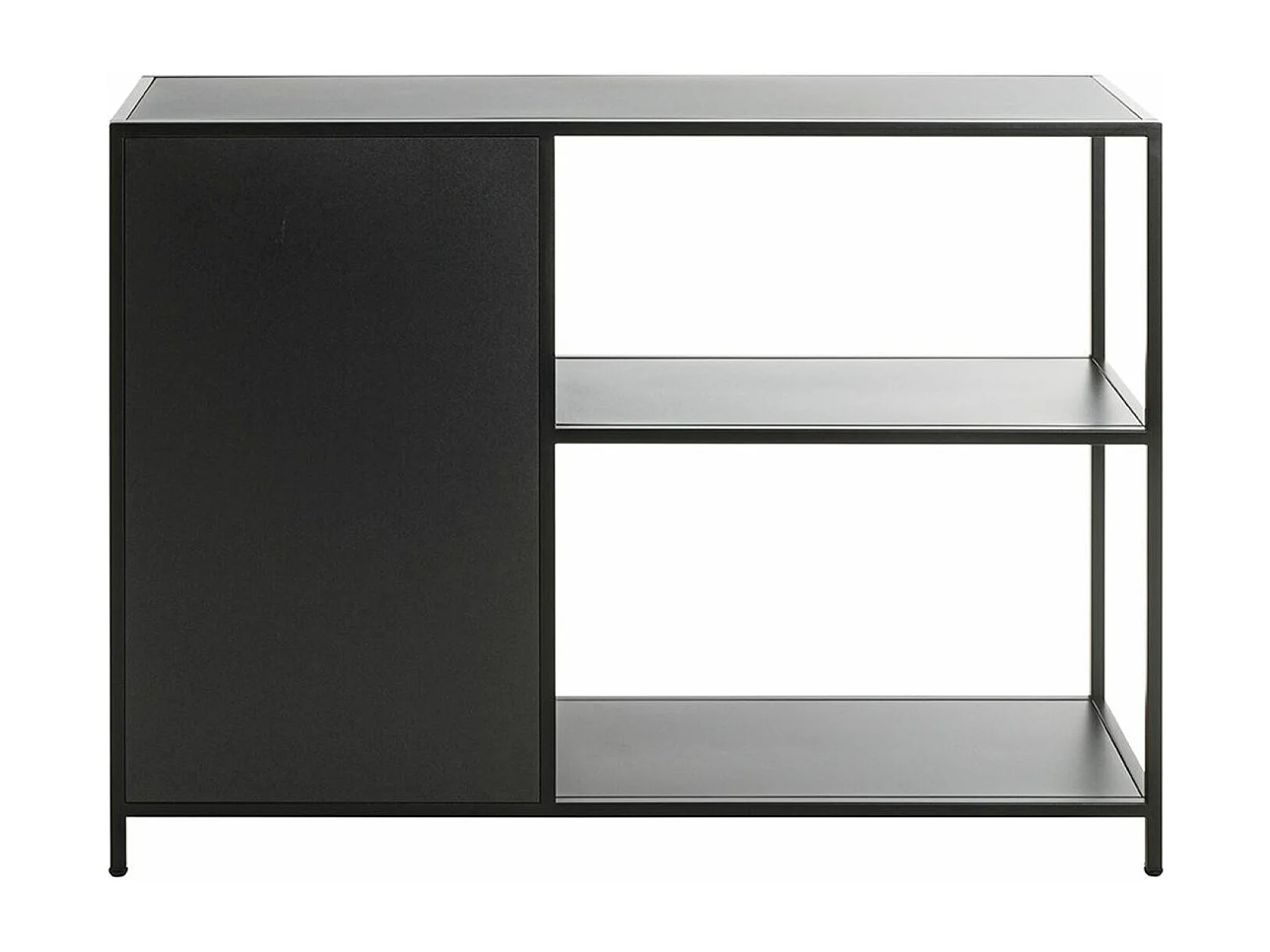 Etagère, meuble étagère avec 1 porte en métal noir -longueur 100 x profondeur 30 x hauteur 75 cm