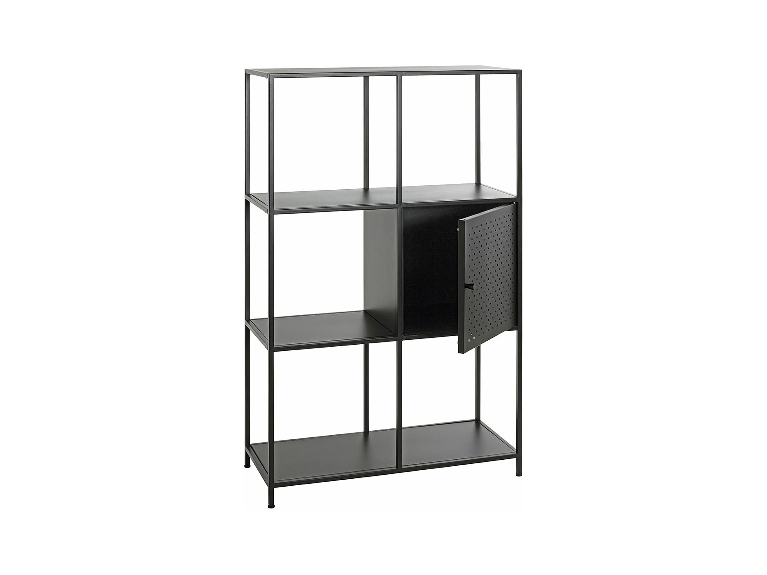 Etagère, meuble étagère avec 1 porte en métal noir -longueur 80 x profondeur 37 x hauteur 134 cm