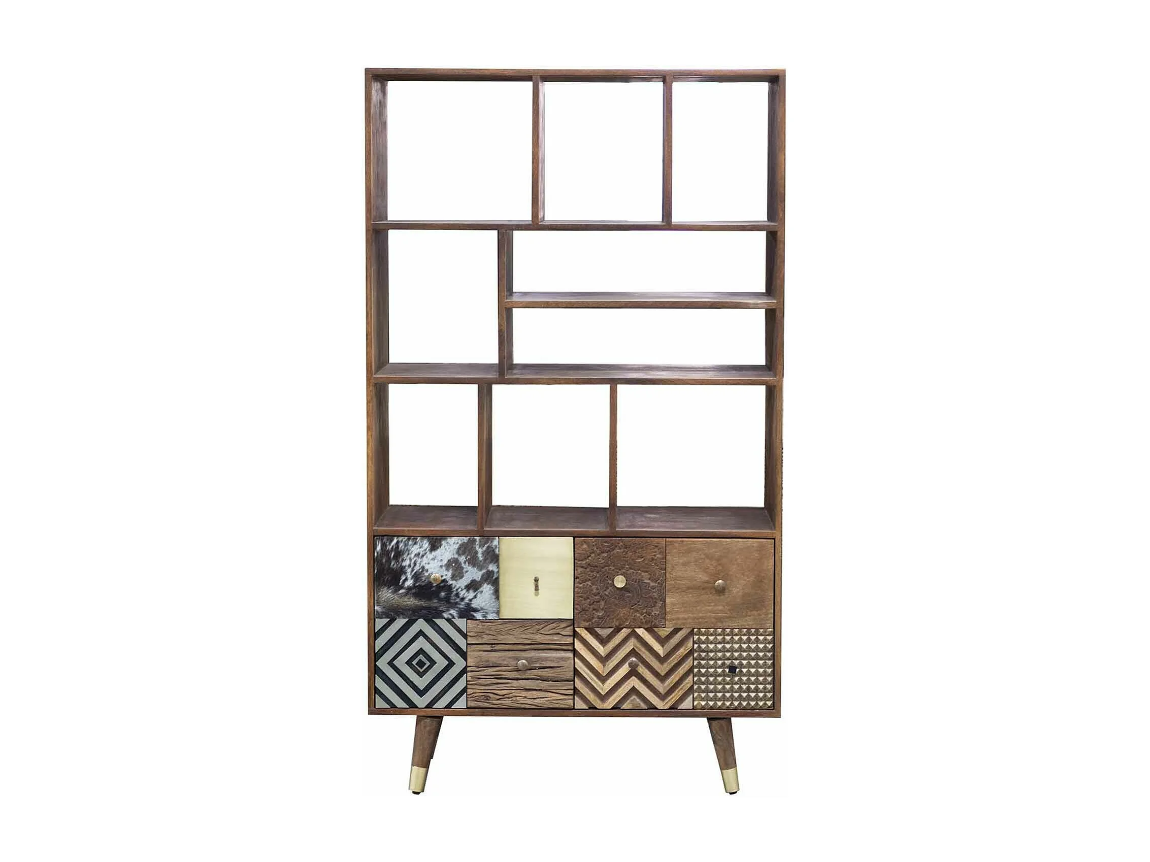 Etagère multi-matériaux peau de vache bois sculpté | Manguier Terranova