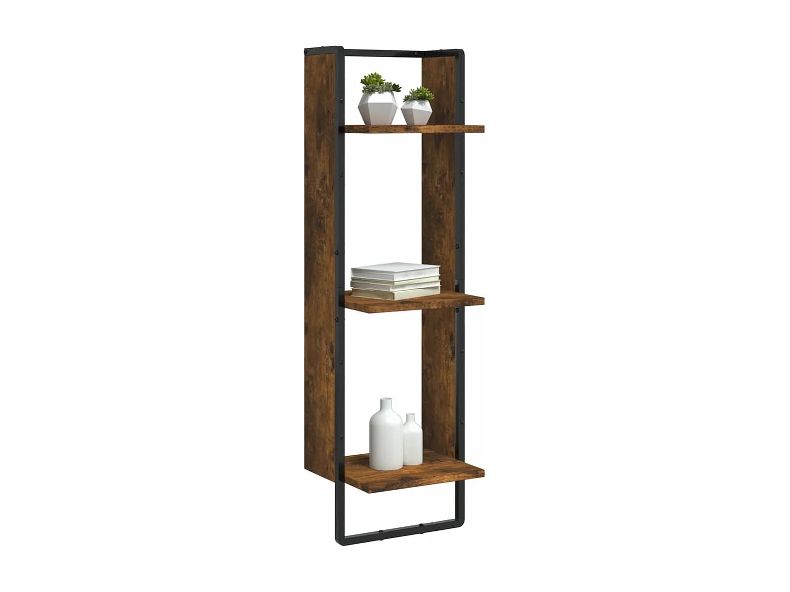 Étagère murale 3 niveaux chêne fumé 30x25x100 bois ingénierie