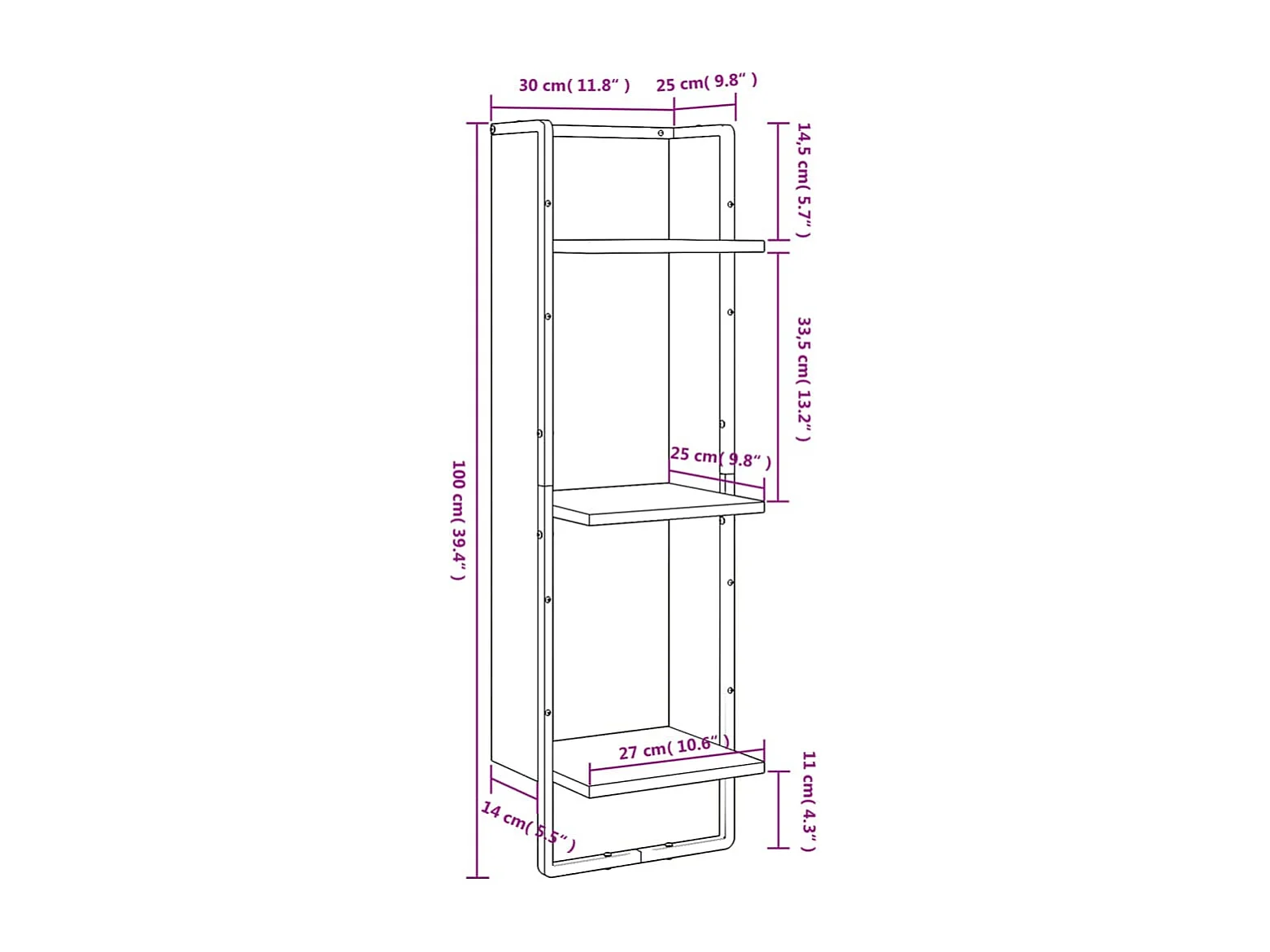 Étagère murale 3 niveaux chêne sonoma 30x25x100 cm OFR62060 BonneVie Meuble