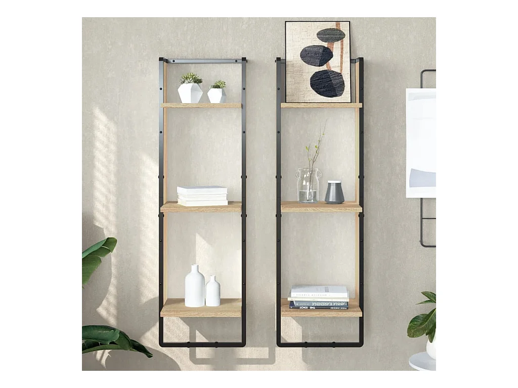 Étagères murales à 3 niveaux avec barres 2 pcs chêne sonoma