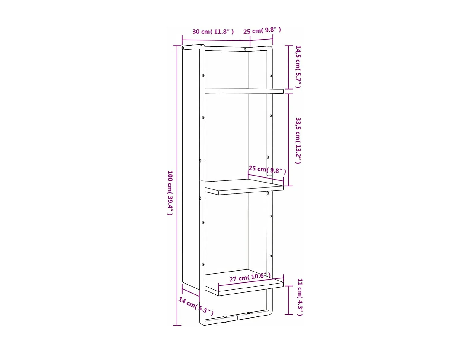 Étagère murale 3 niveaux chêne sonoma 30x25x100