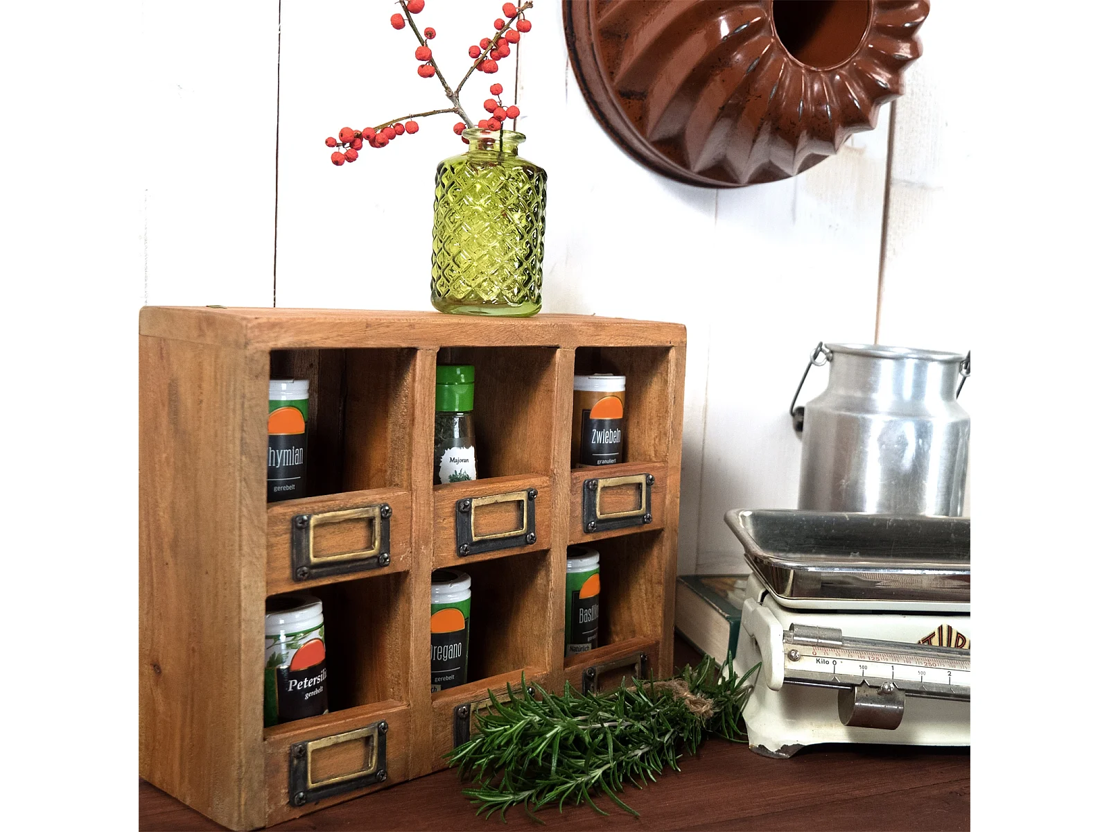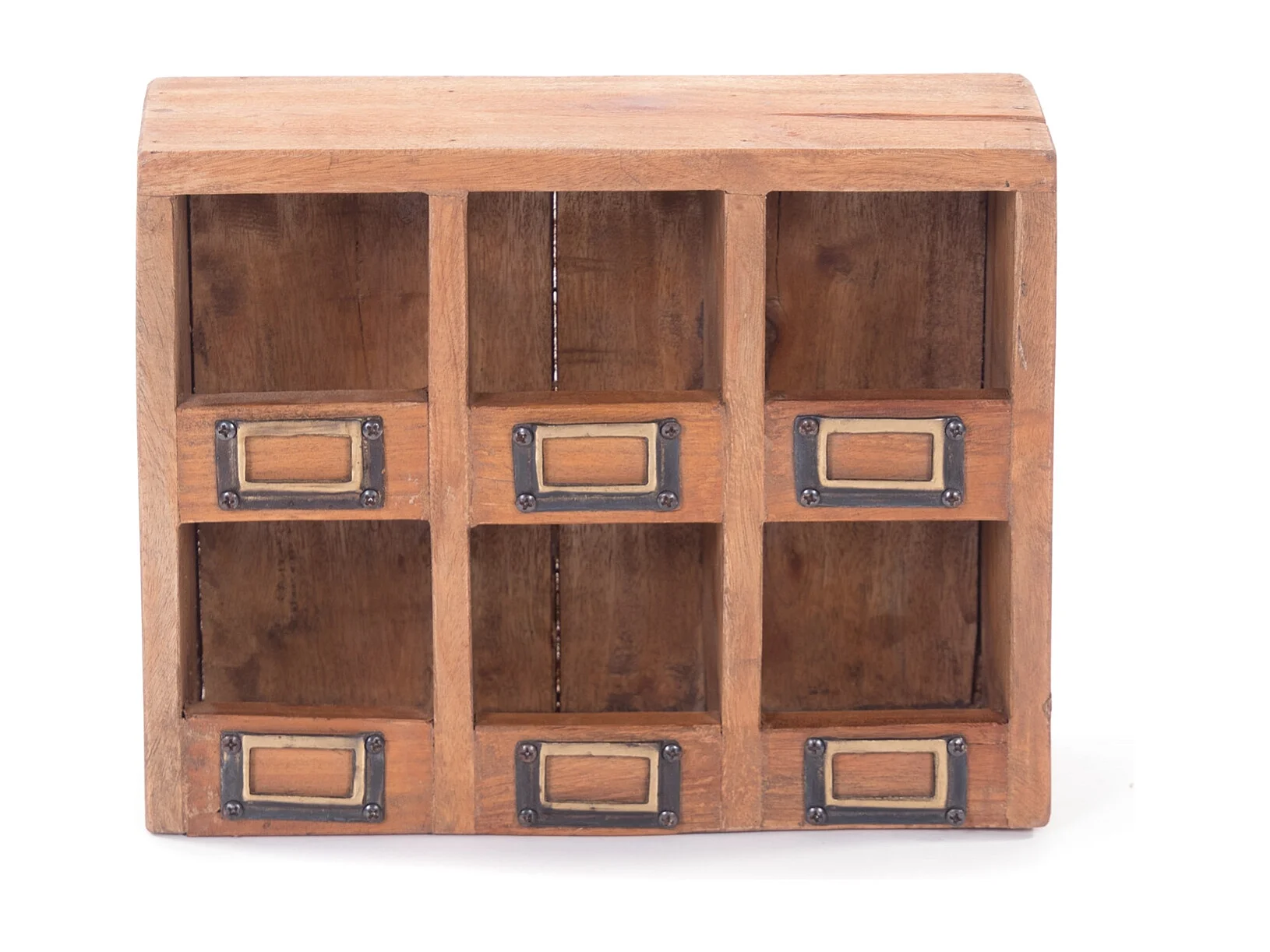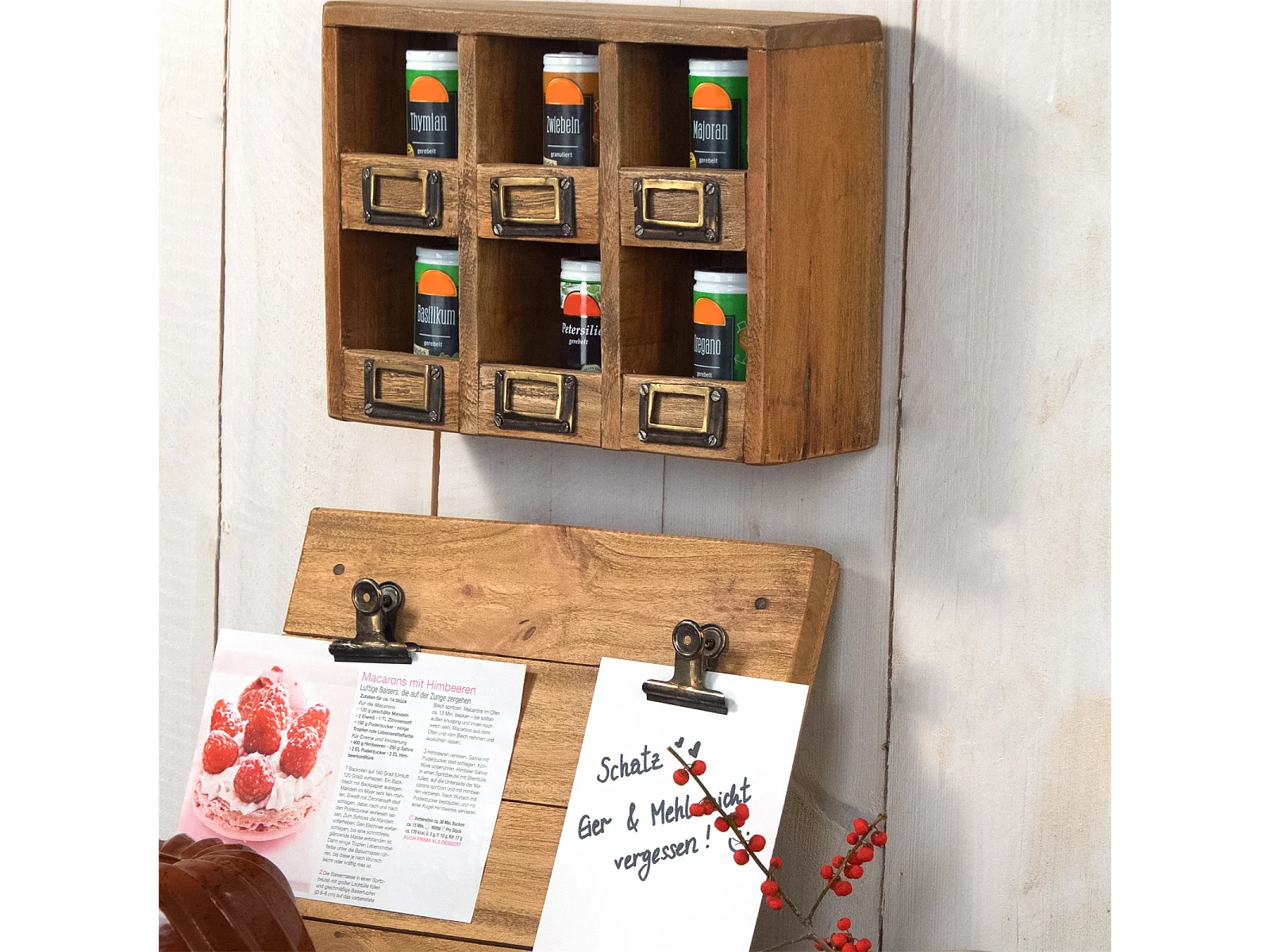 ARMOIRE MURALE Jasmina Bois massif de mahogany, 2 étagères, 3 tiroirs couleurs naturelles