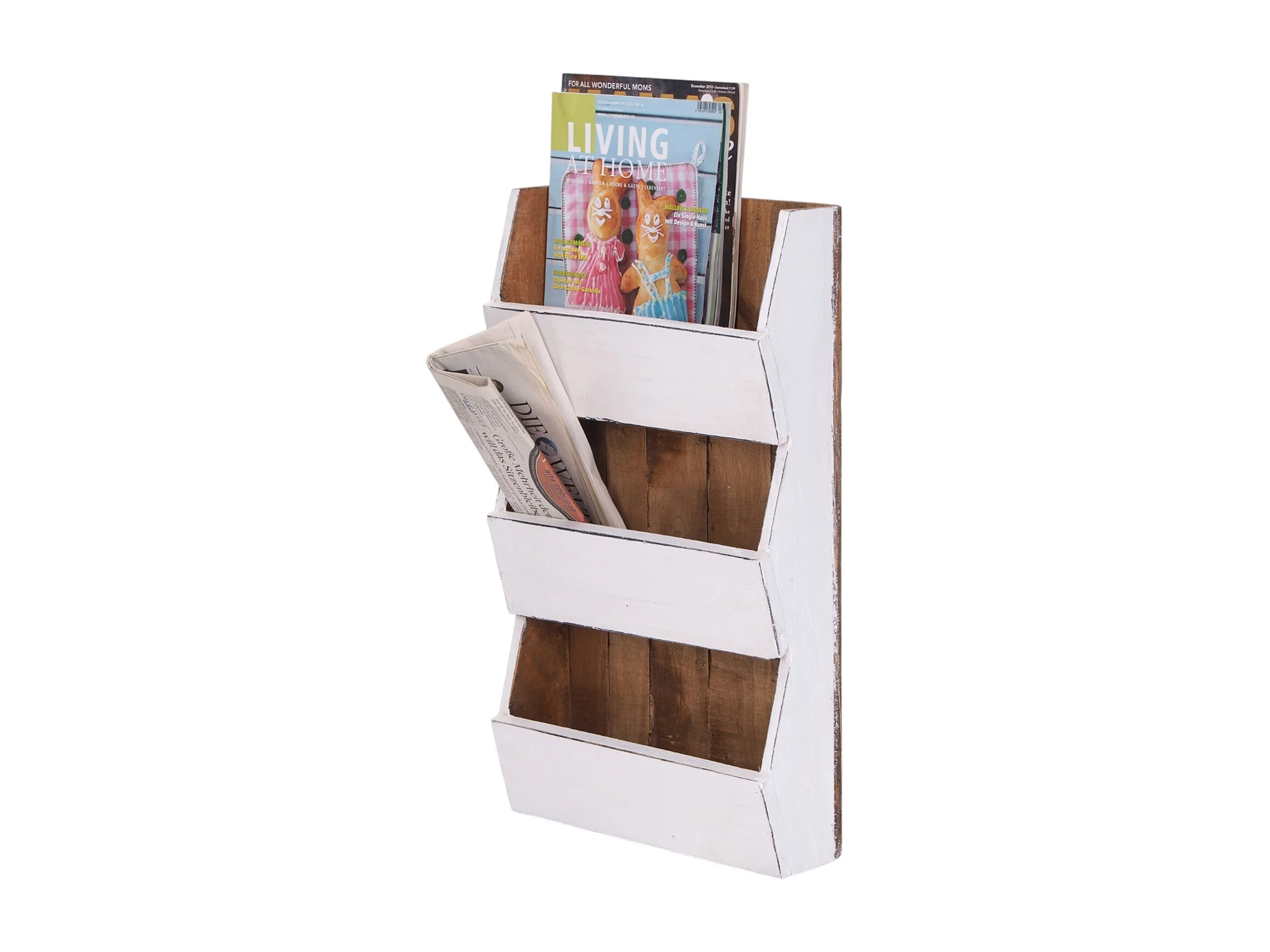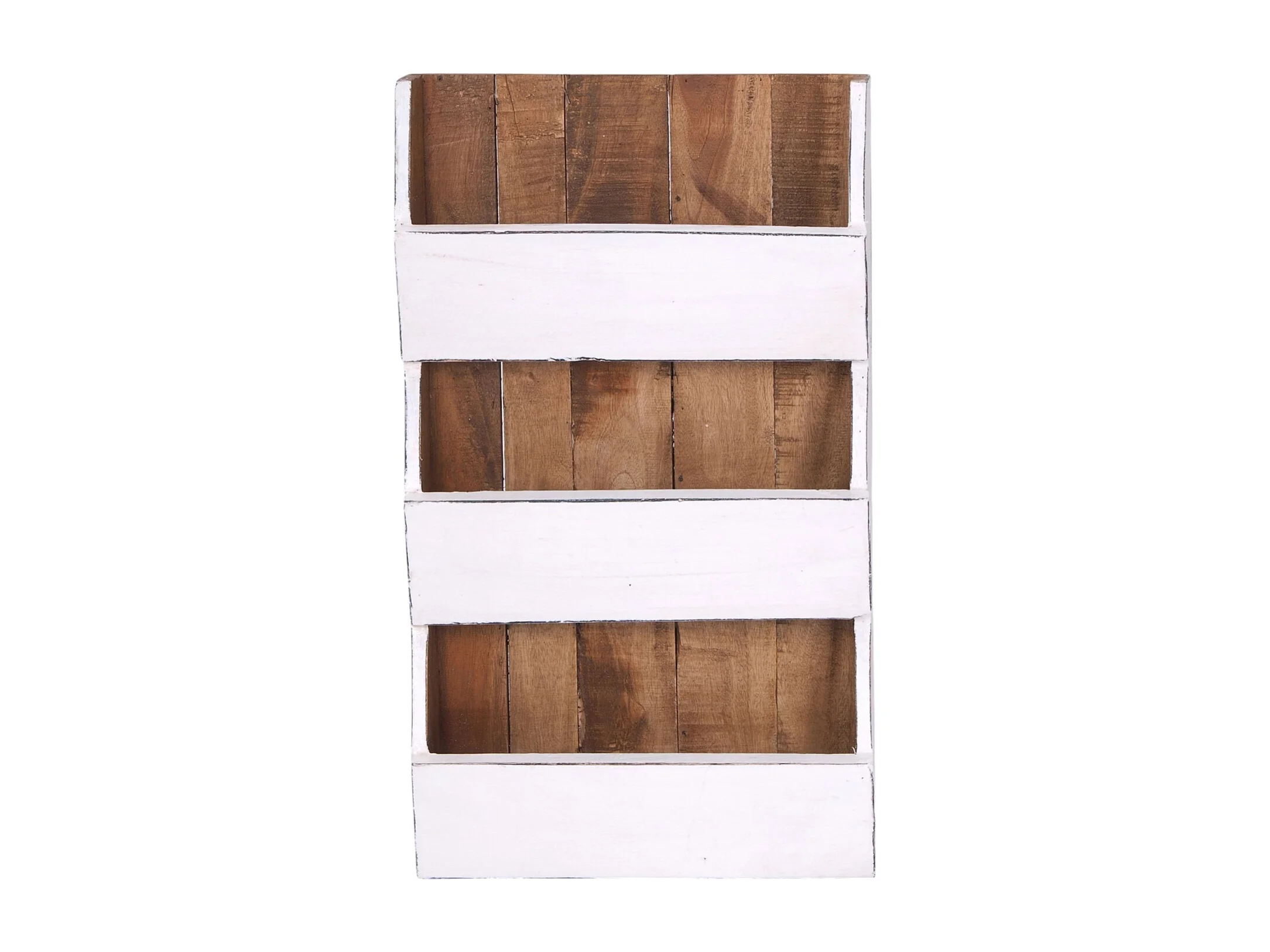 ÉTAGÈRE MURALE À JOURNAUX NOUVELLES 60 Bois massif en acajou, 3 compartiments 06 weiß-landhaus