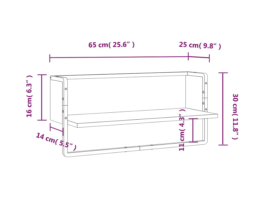 Étagère murale avec barre sonoma gris 65x25x30