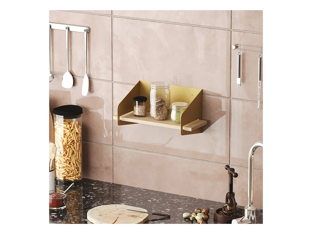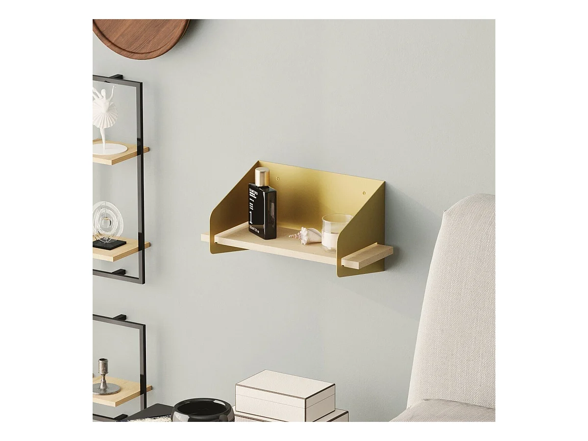 Étagère murale Dgervason, Étagère, Tablette murale, Rayonnage polyvalent, 15x42 h19 cm, Or et Marron