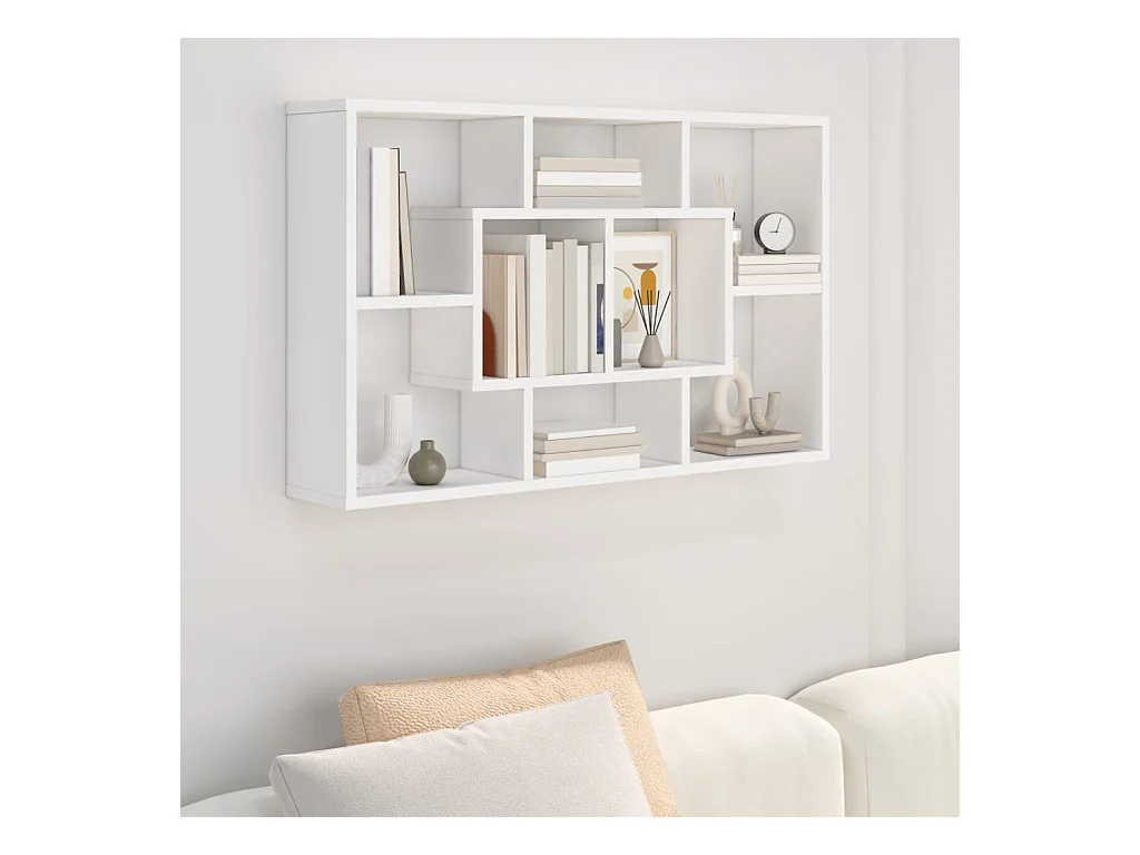 Étagère murale d'affichage 8 compartiments Blanc OFR10668 BonneVie Meuble