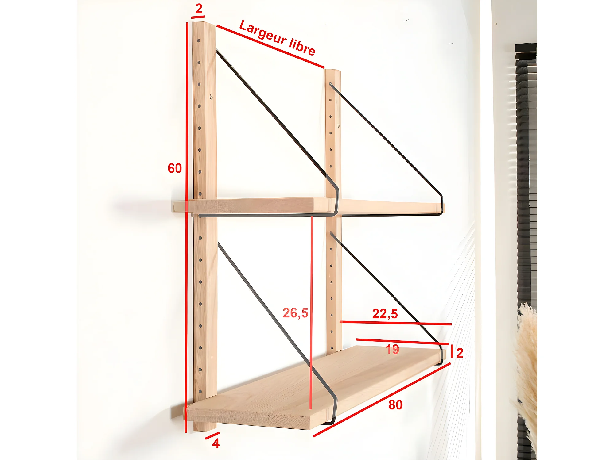 Etagère murale bois massif 2 plateaux (bois blanc) PALERME