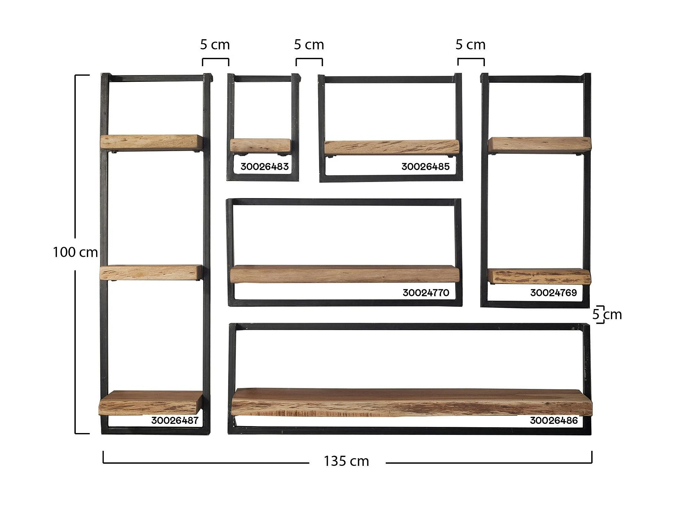 Etagère murale bois métal moderne (lot de 3) MELBOURNE