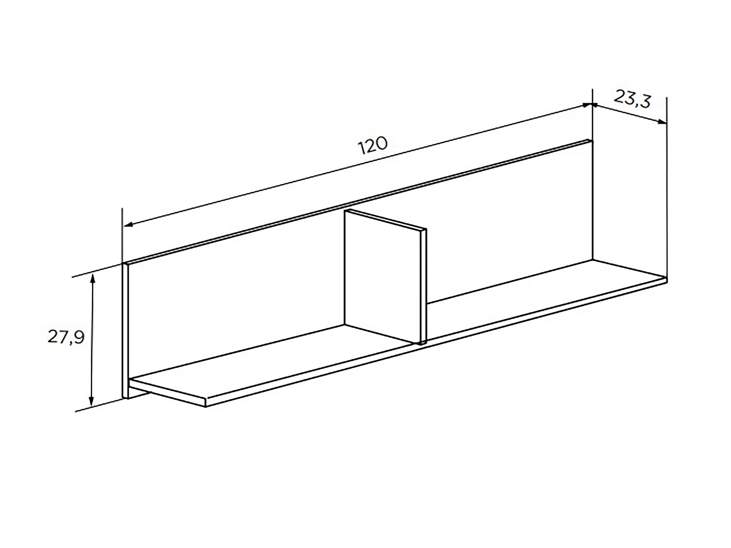 Etagère murale coloris Chêne cambrian/blanc - Longueur 120 x profondeur 23,3 x hauteur 27,9 cm