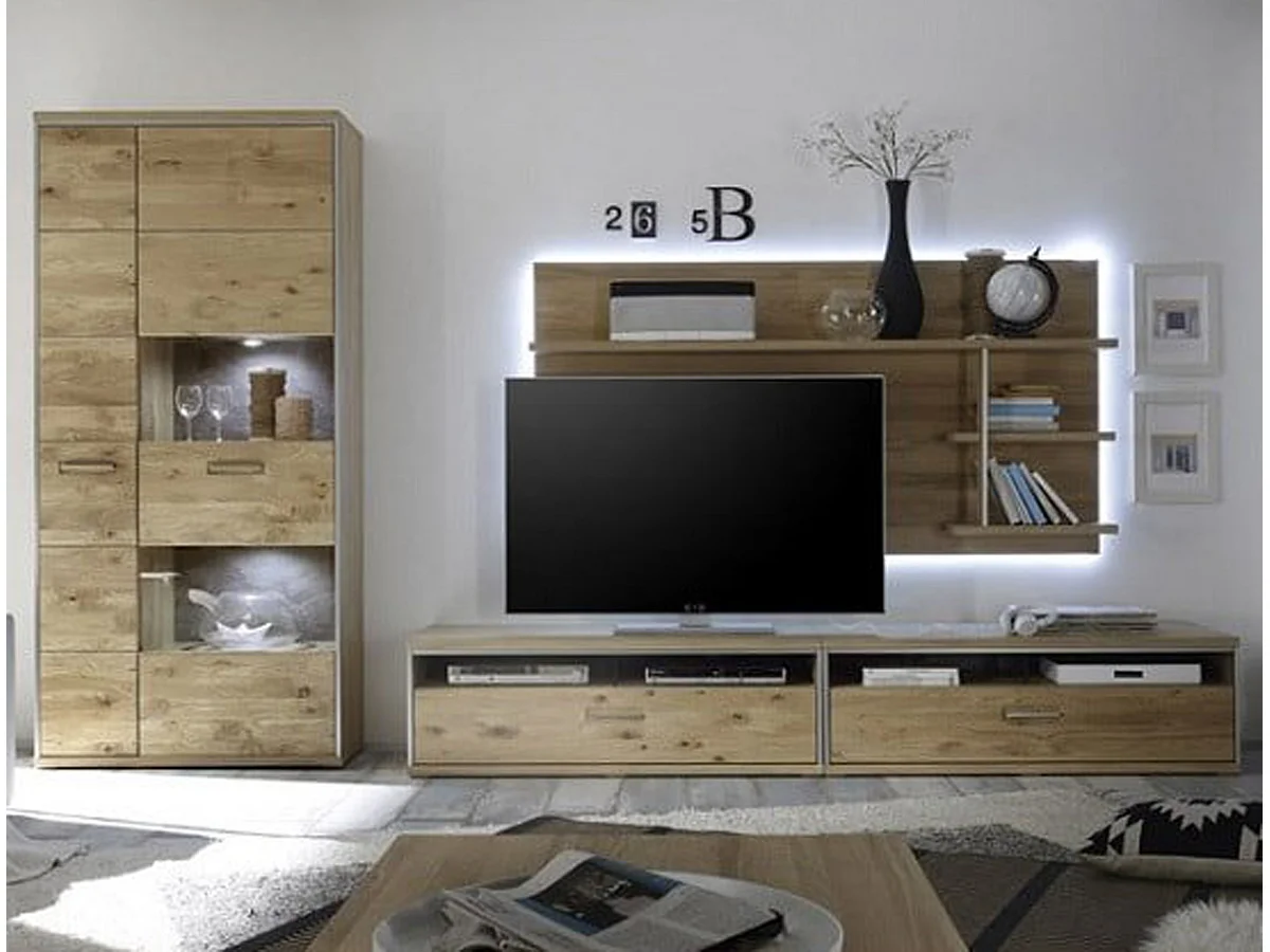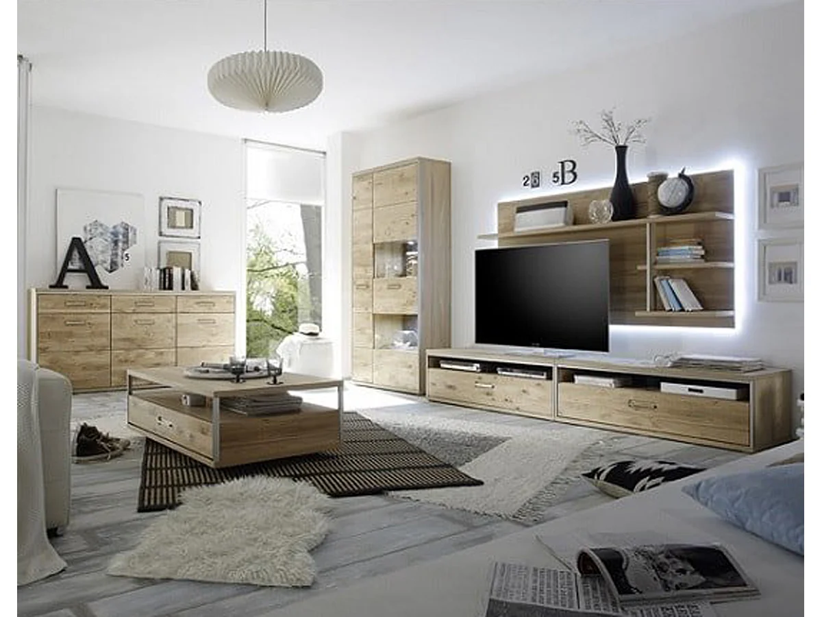 Etagère murale coloris chêne noueux blanchi - Longueur 184 x Hauteur 96 x Profondeur 28 cm
