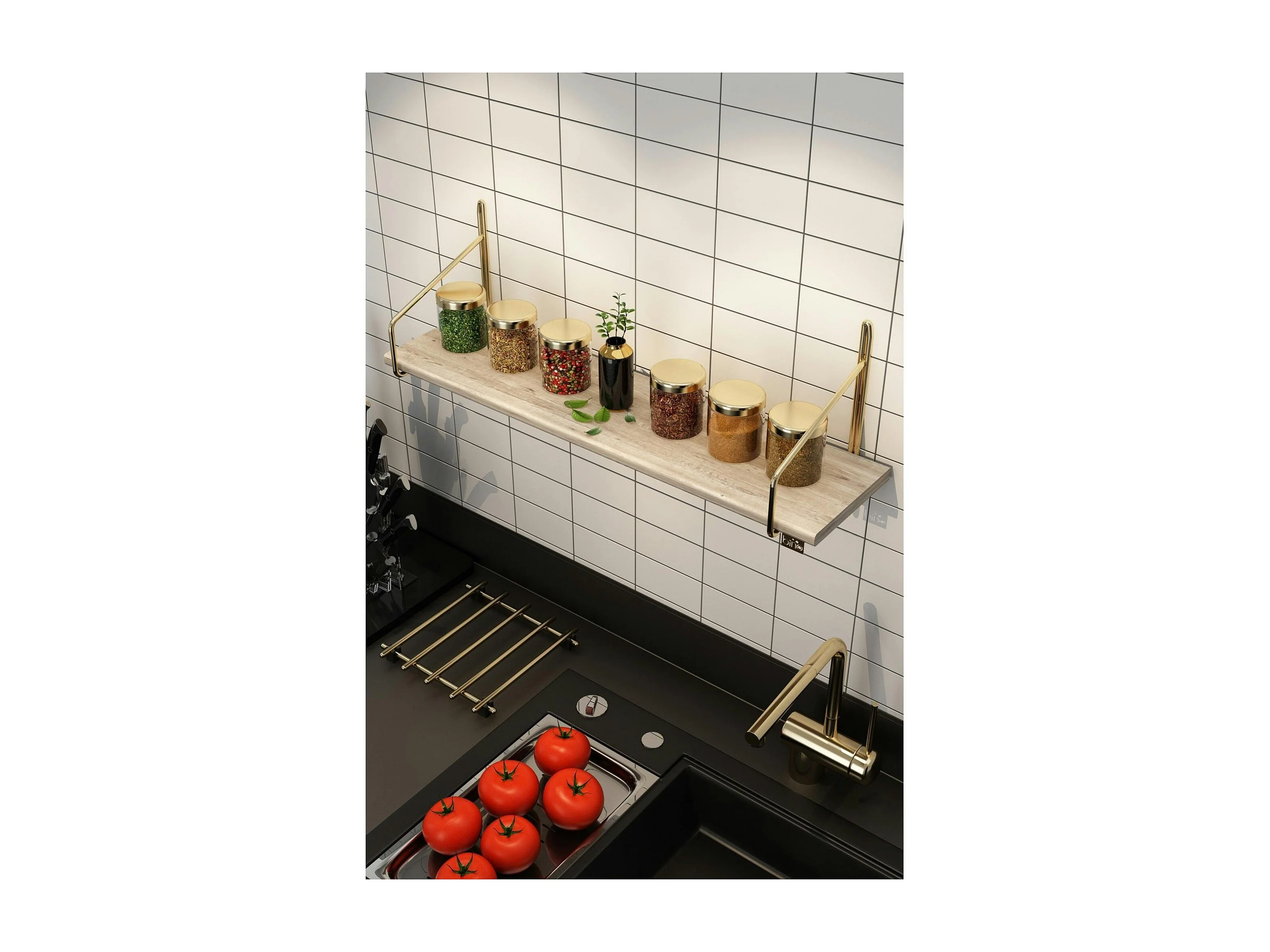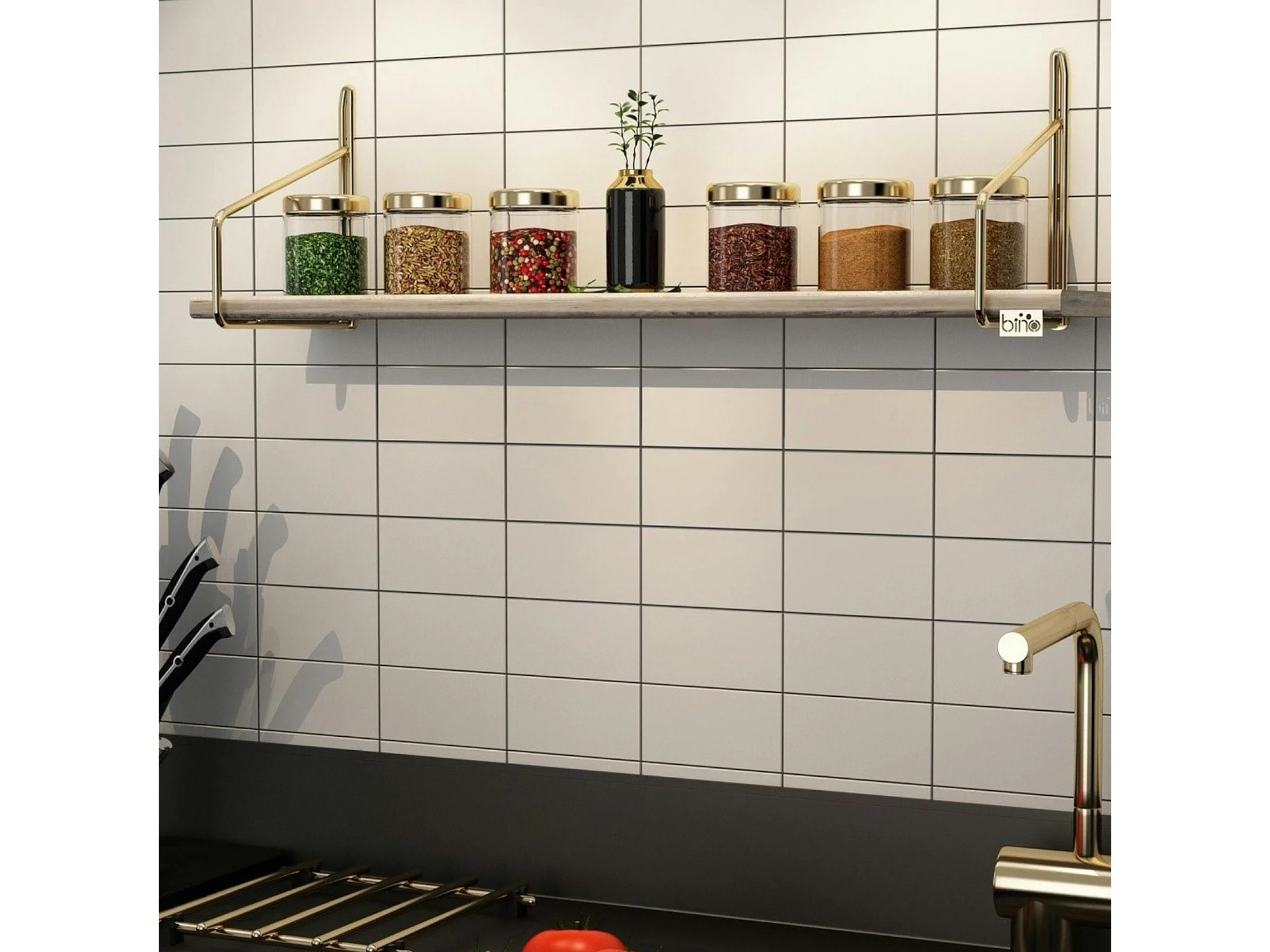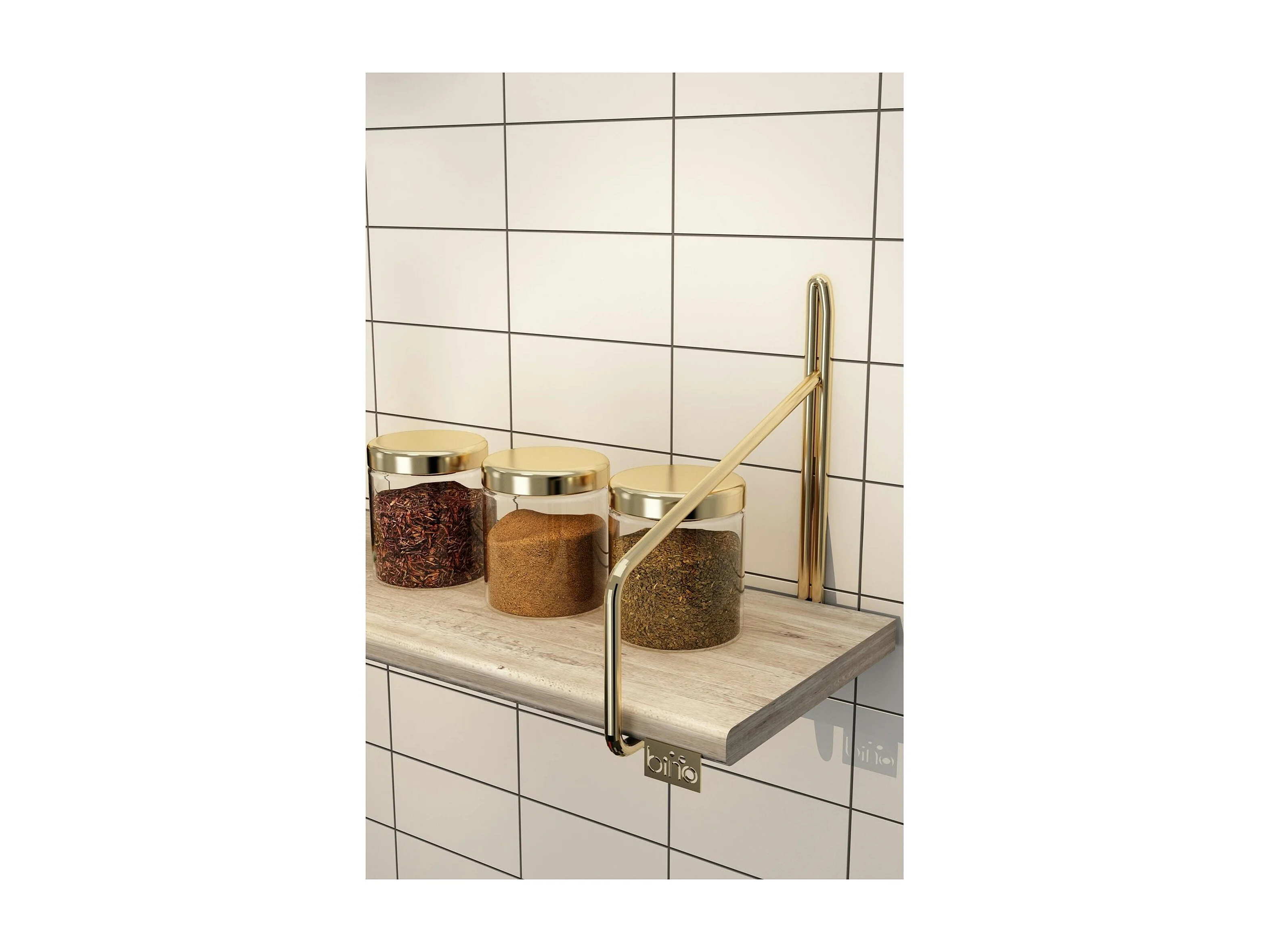 Étagère murale cuisine - bois clair, supports dorés AVIALA