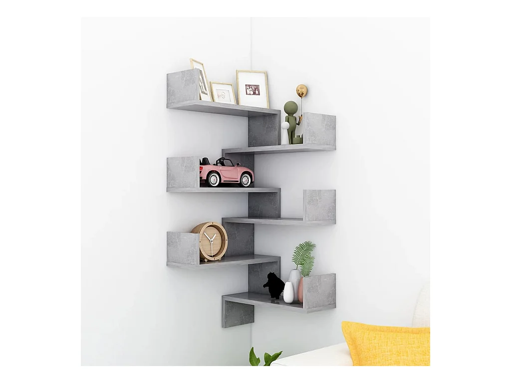 Étagère d'angle murale Gris béton 20x20x127,5 cm Aggloméré OFR36833 BonneVie Meuble