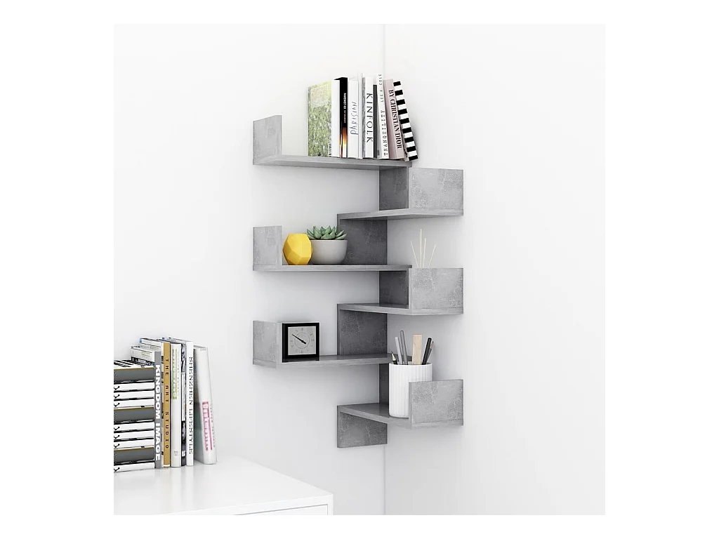 Étagère murale d'angle Gris béton 40x40x50 cm Aggloméré OFR64872 BonneVie Meuble