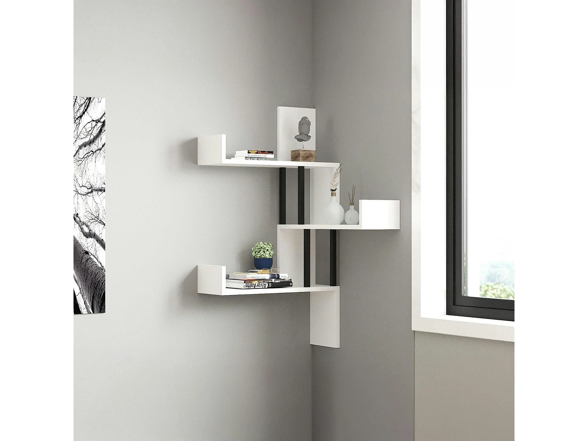 Étagère murale d’angle blanche - design, 3 plateaux JENA