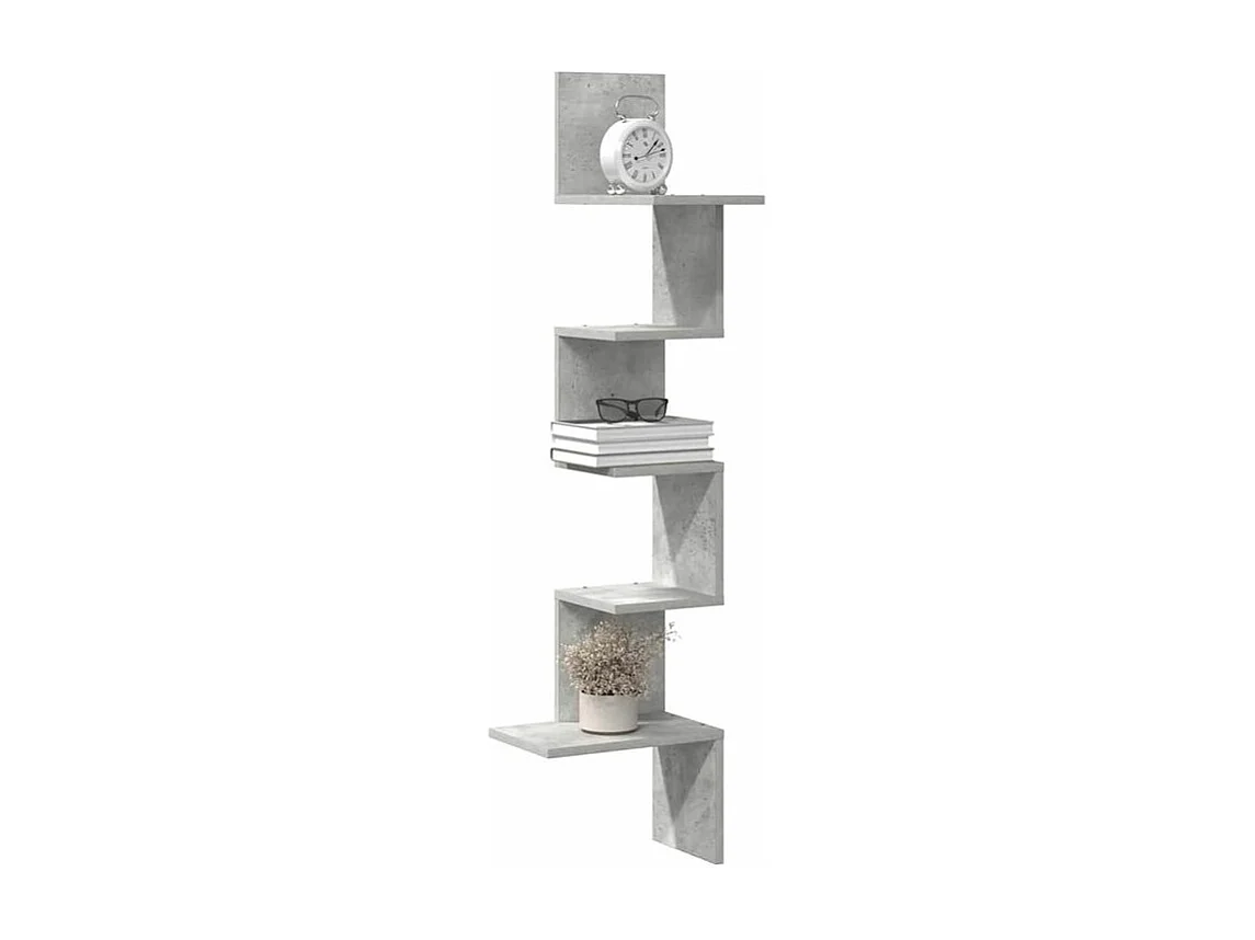 Étagère murale d'angle gris béton 45x45x147 bois d'ingénierie