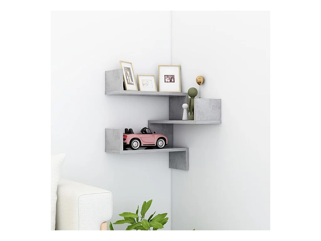 Étagère murale d'angle Gris béton 40x40x50