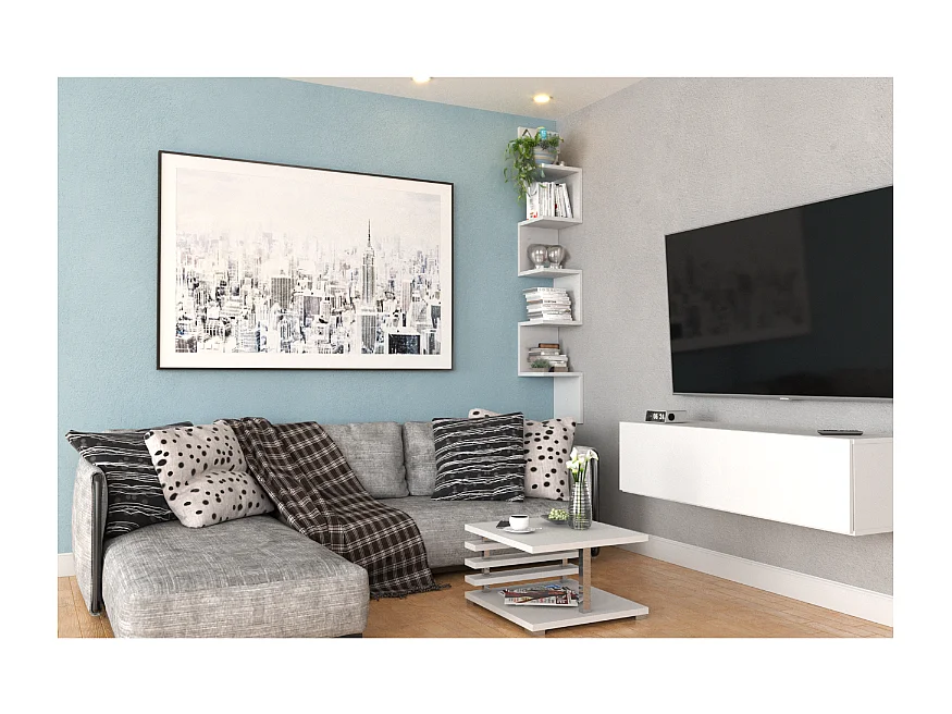 Étagère murale d’angle suspendue blanche – bibliothèque pour livres, jouets, style loft 22x142 cm