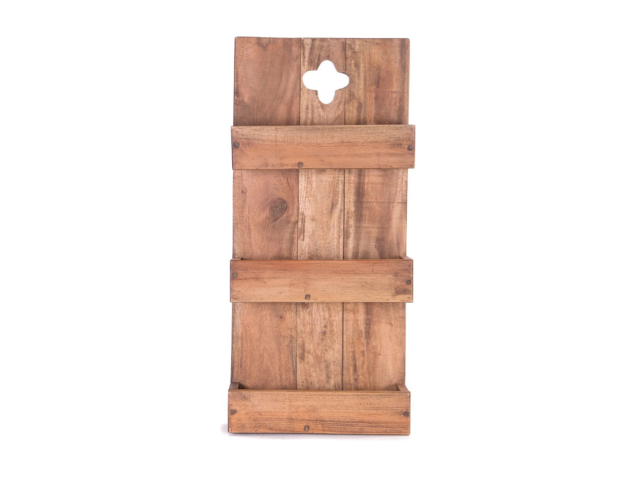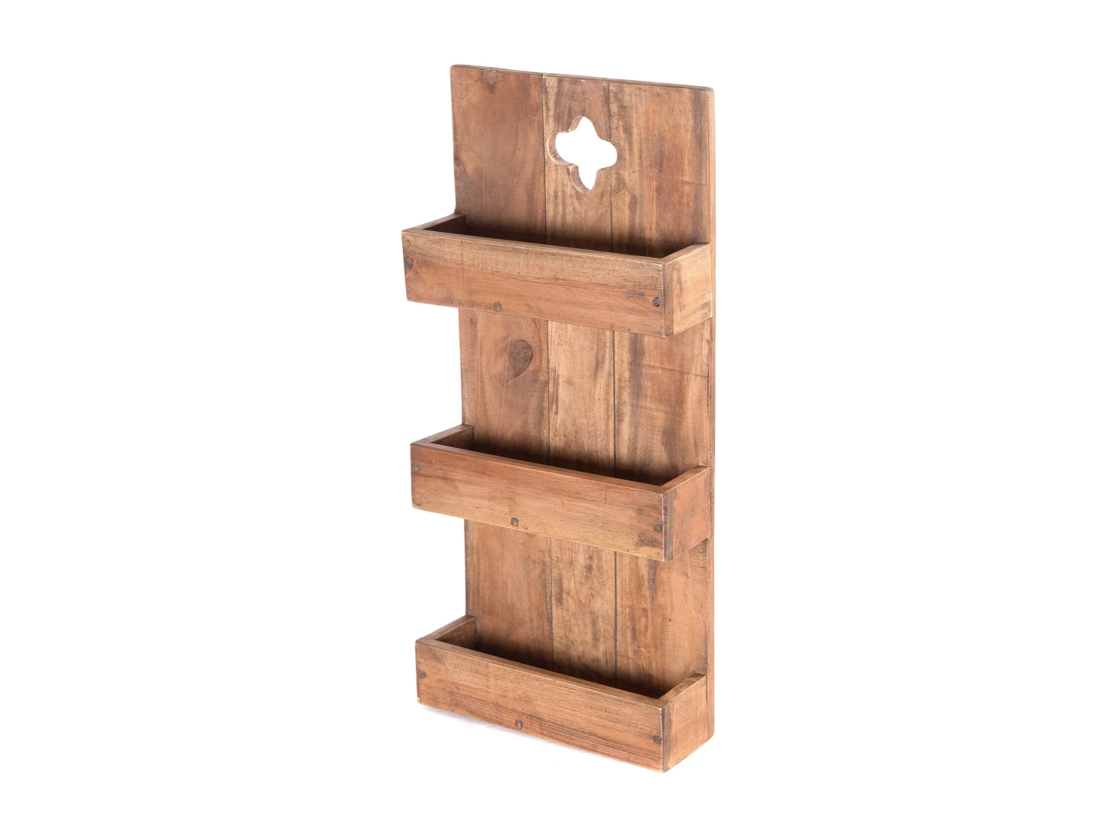 ÉTAGÈRE MURALE À JOURNAUX NOUVELLES 60 Bois massif en acajou, 3 compartiments 01 natur-vintage