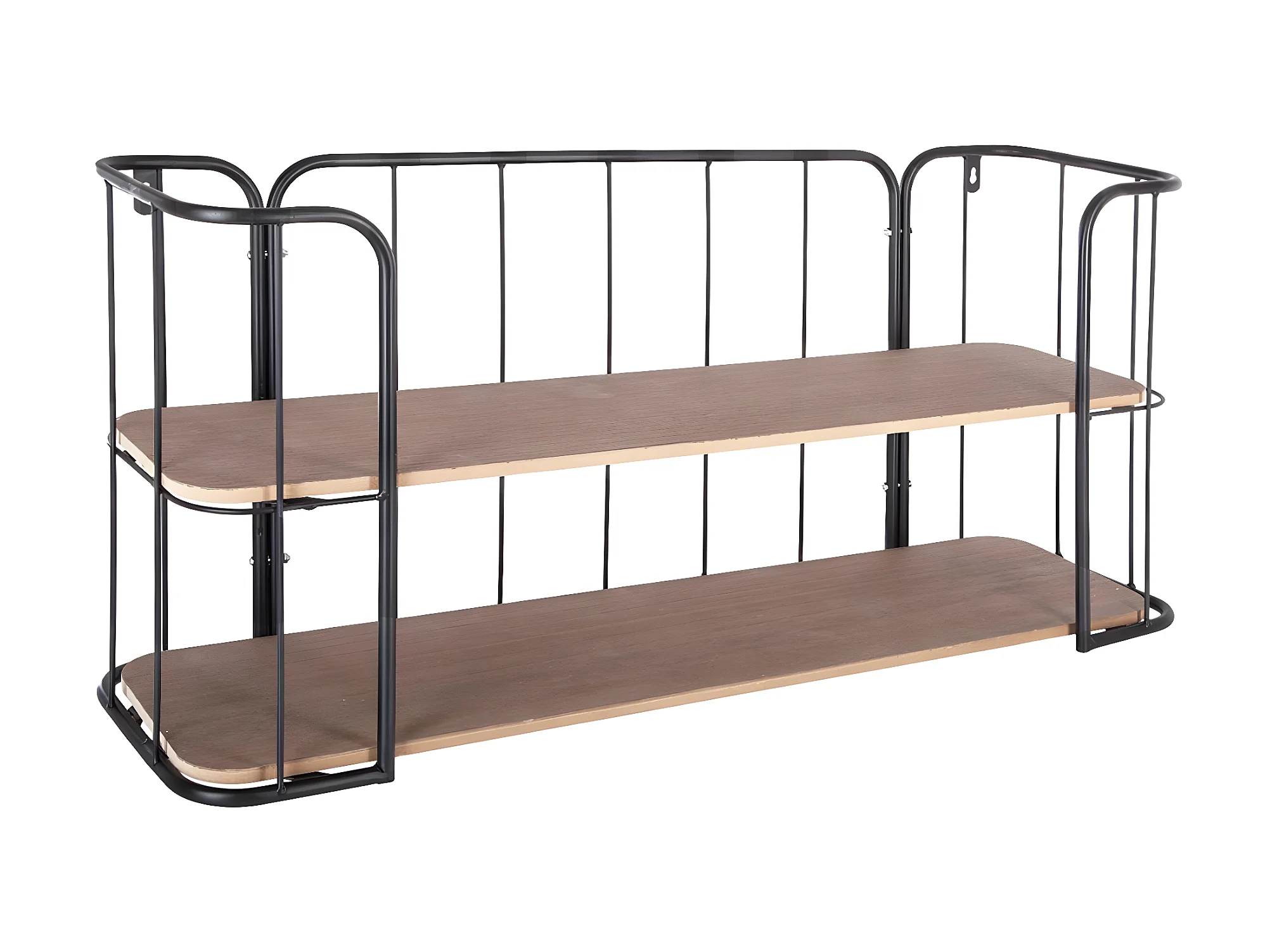 Etagère murale de 2 Étages en Métal et Bois - 75 x 20 x 36 cm