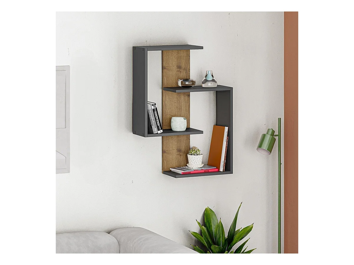 Etagère murale décor chêne et gris anthracite H85 cm - PARANOID