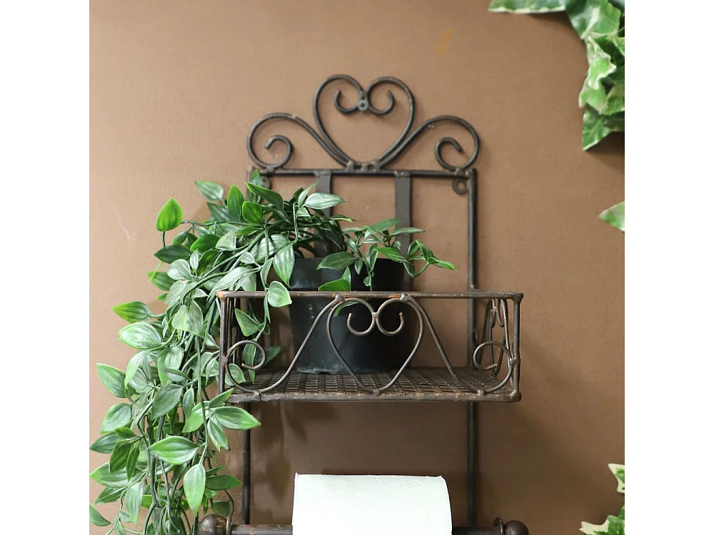 Etagère murale dérouleur papier toilette en fer forgé marron 37 x 18 cm