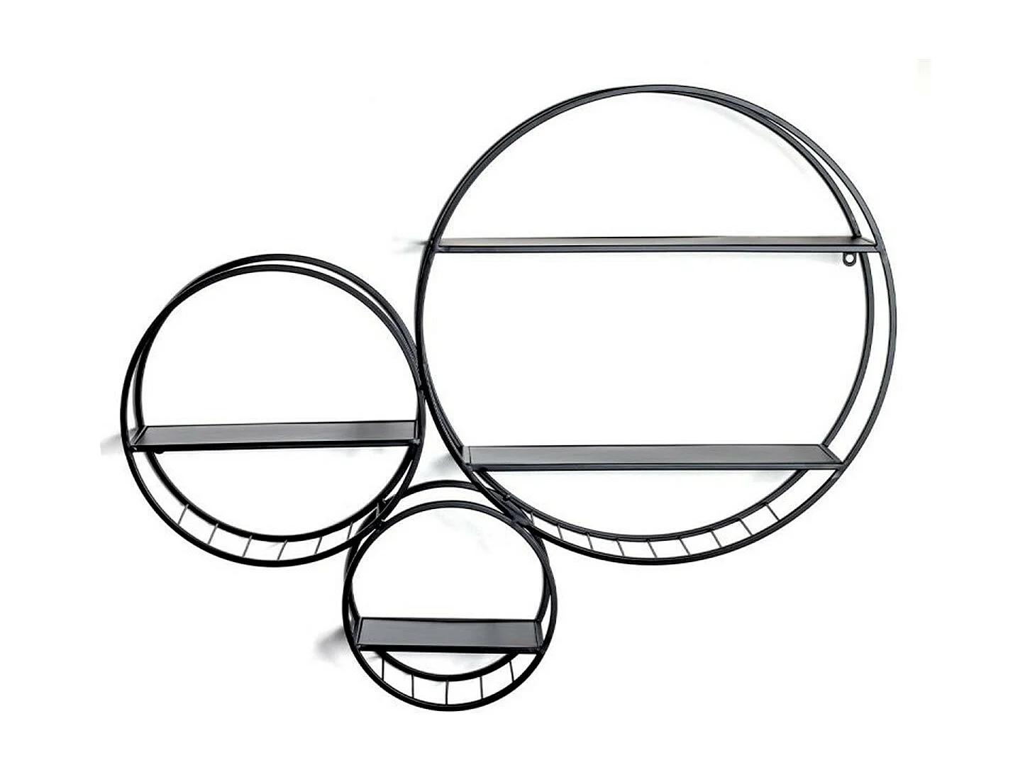 Lot de 3 étagères murales en bois MDF et fer coloris noir