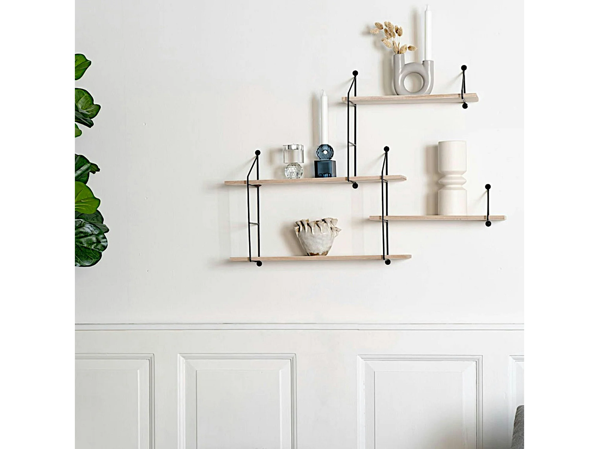 Etagère murale déstructurée en métal noir et bois, 4 plateaux TALLINN