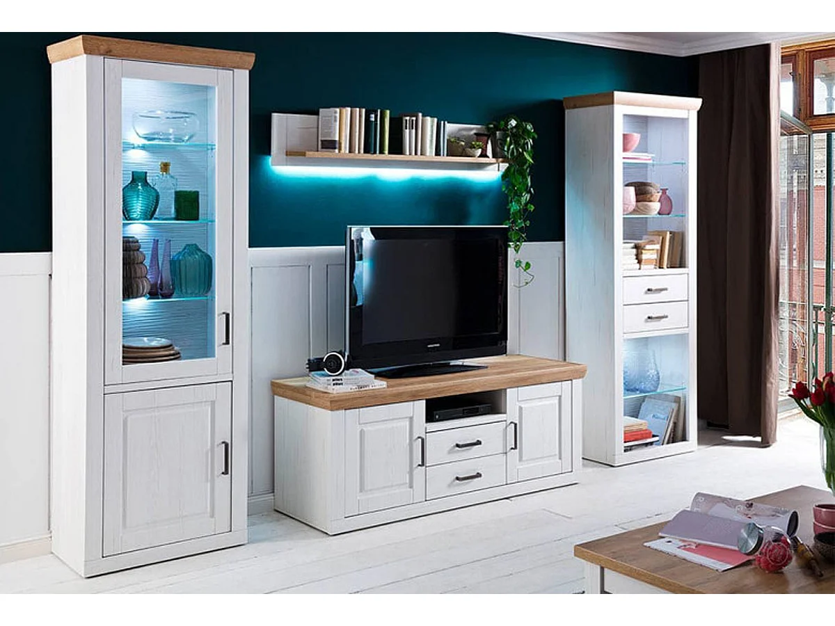 Etagère murale en pin blanc et chêne Nelson - L.140 x H.35 x P.26 cm
