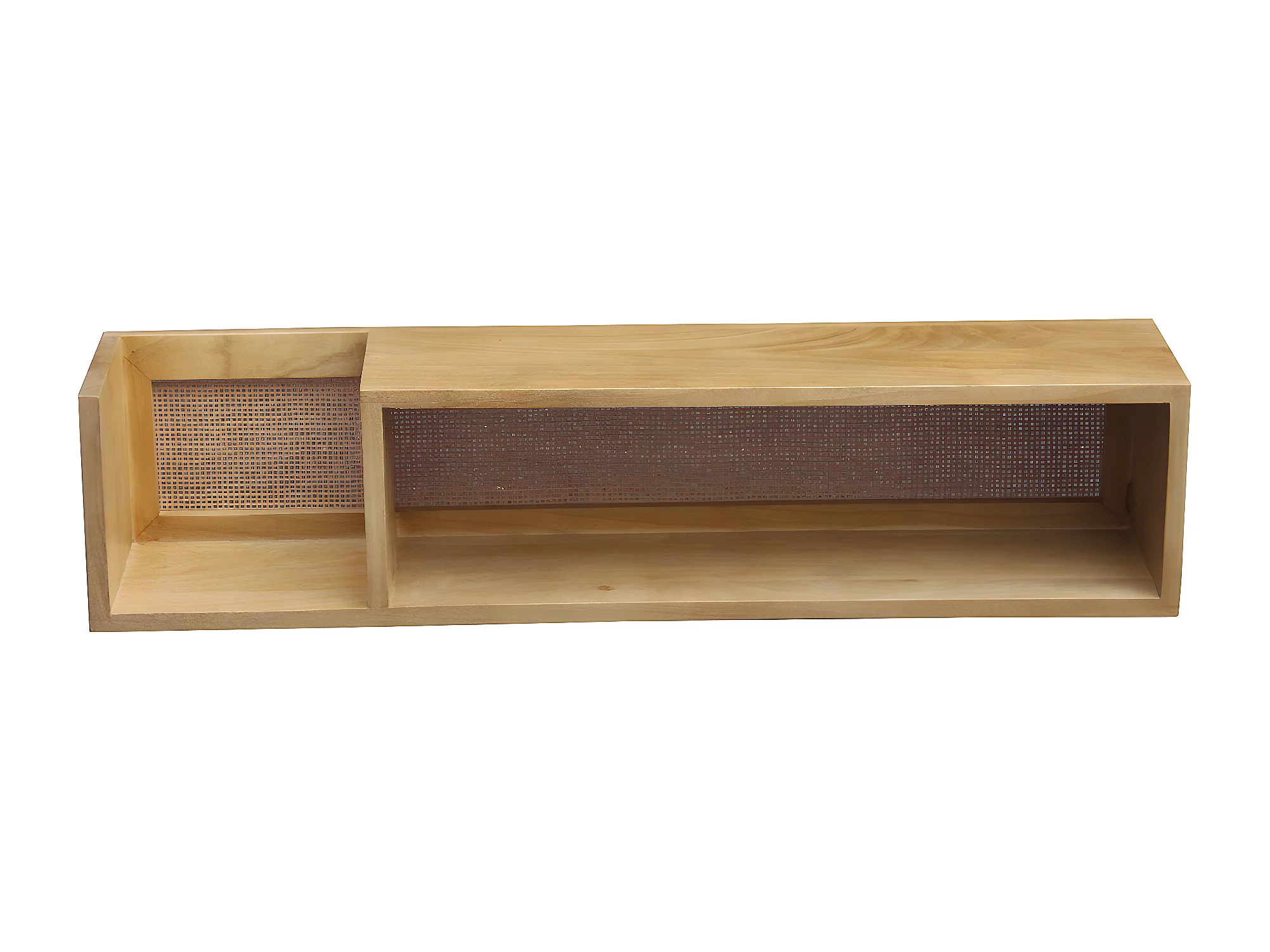 Étagère tablette murale en bois manguier massif et cannage rotin L60 cm ACANGE
