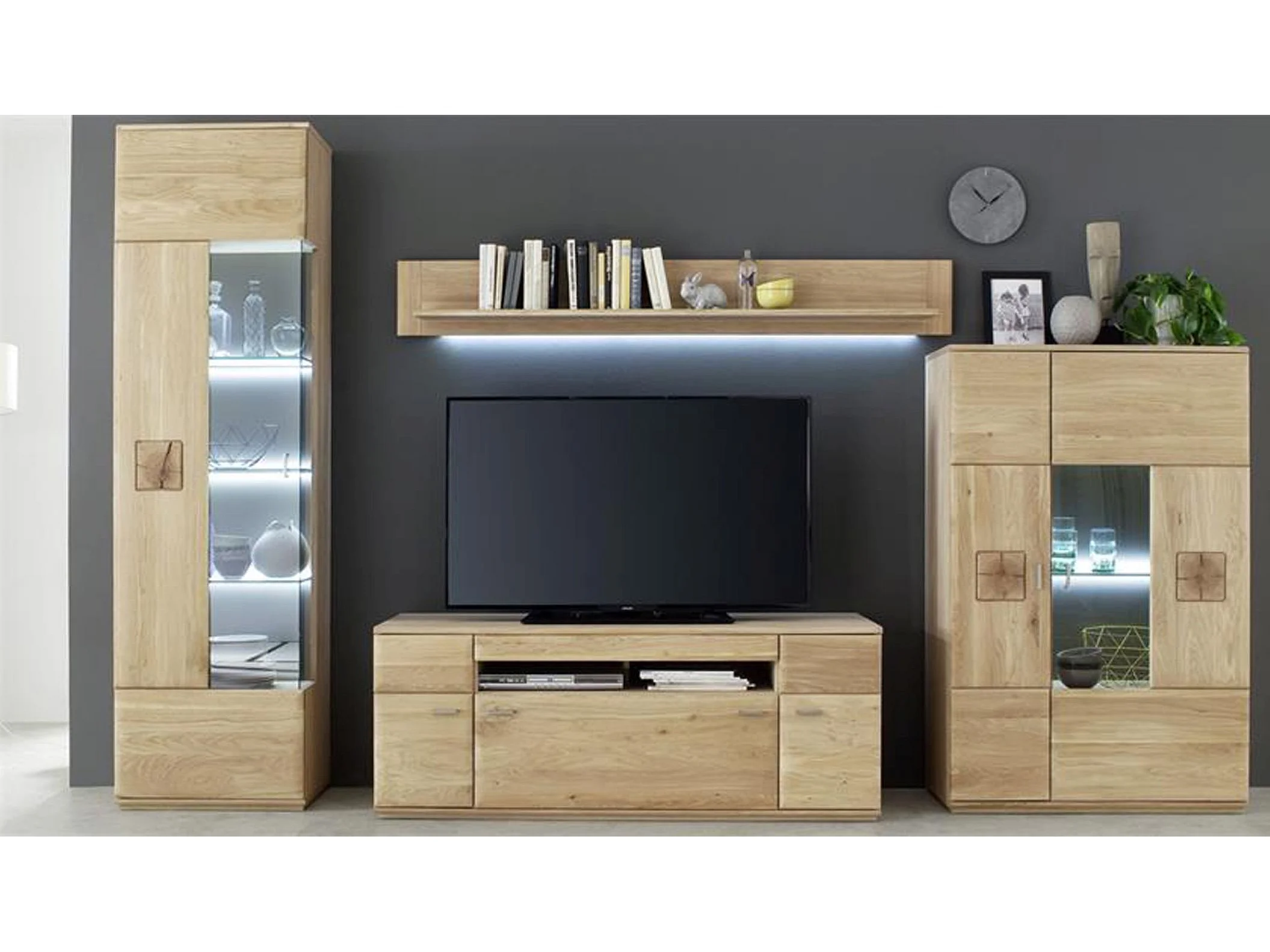 Etagère murale en chêne massif bianco avec LED - L.180 x H.24 x P.25 cm