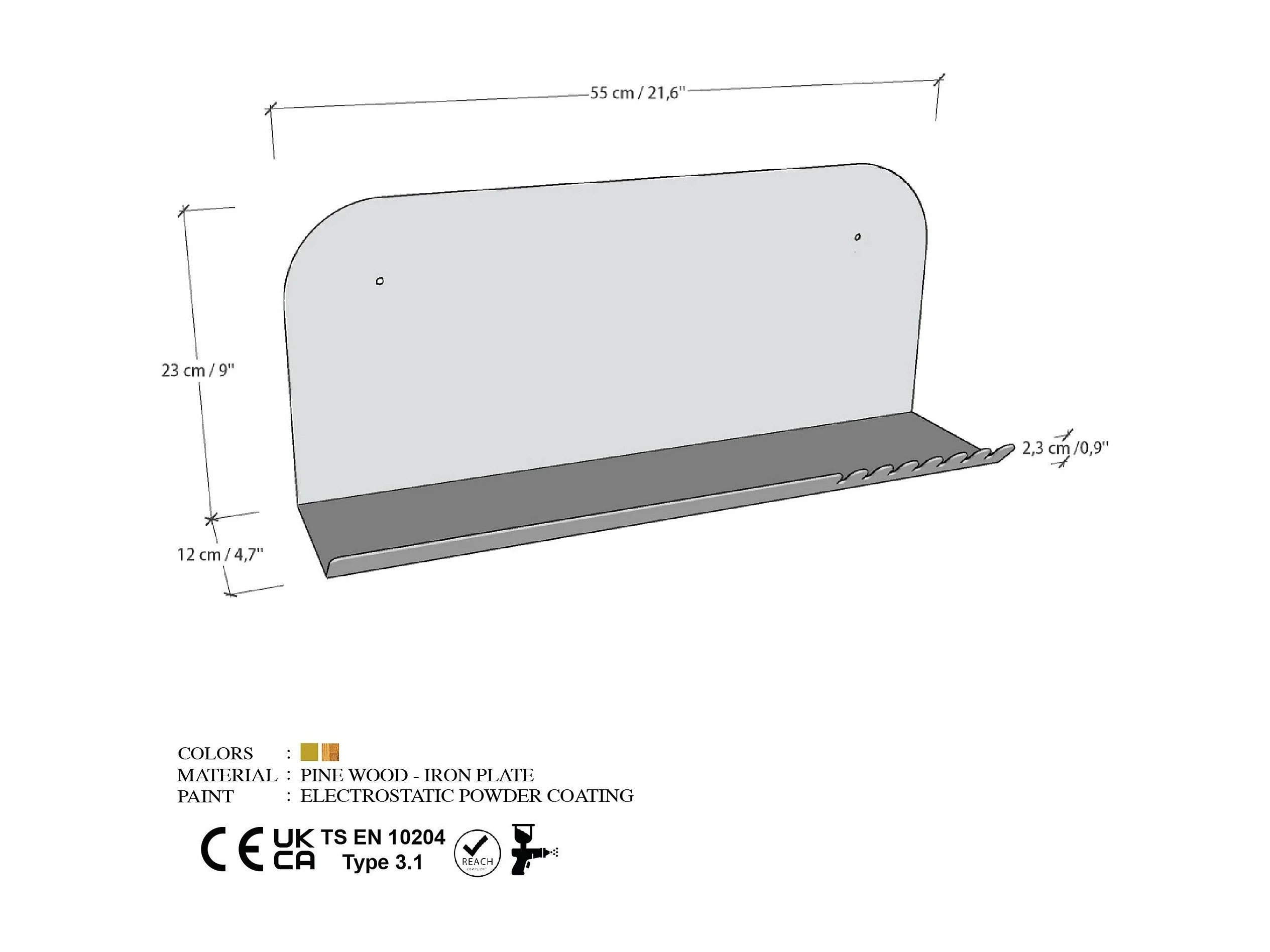 Etagère murale avec tablette en pin massif et Métal L40 cm - WREN