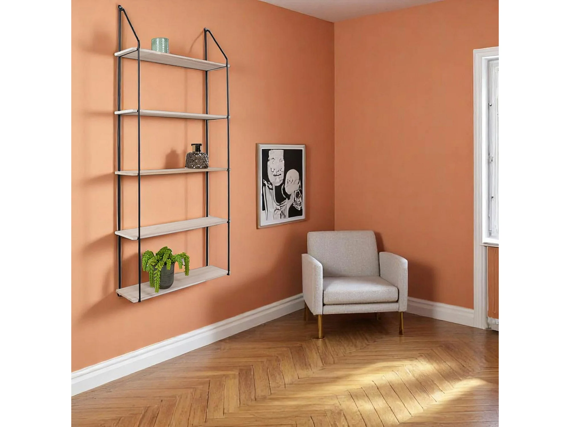 Etagère murale en métal noir et bois, 5 plateaux TALLINN
