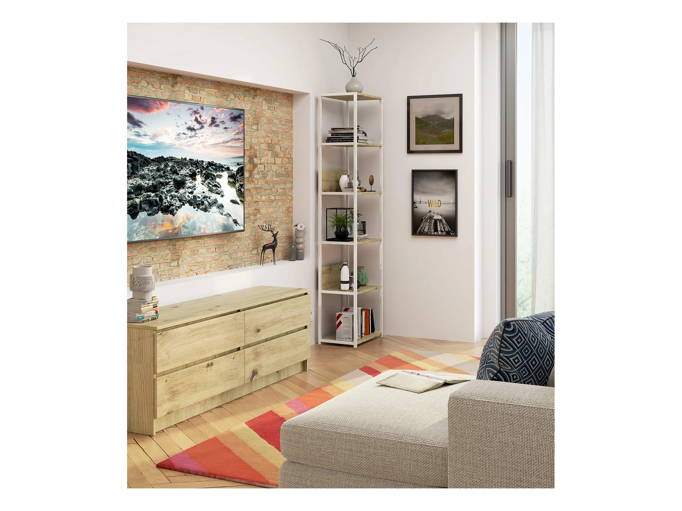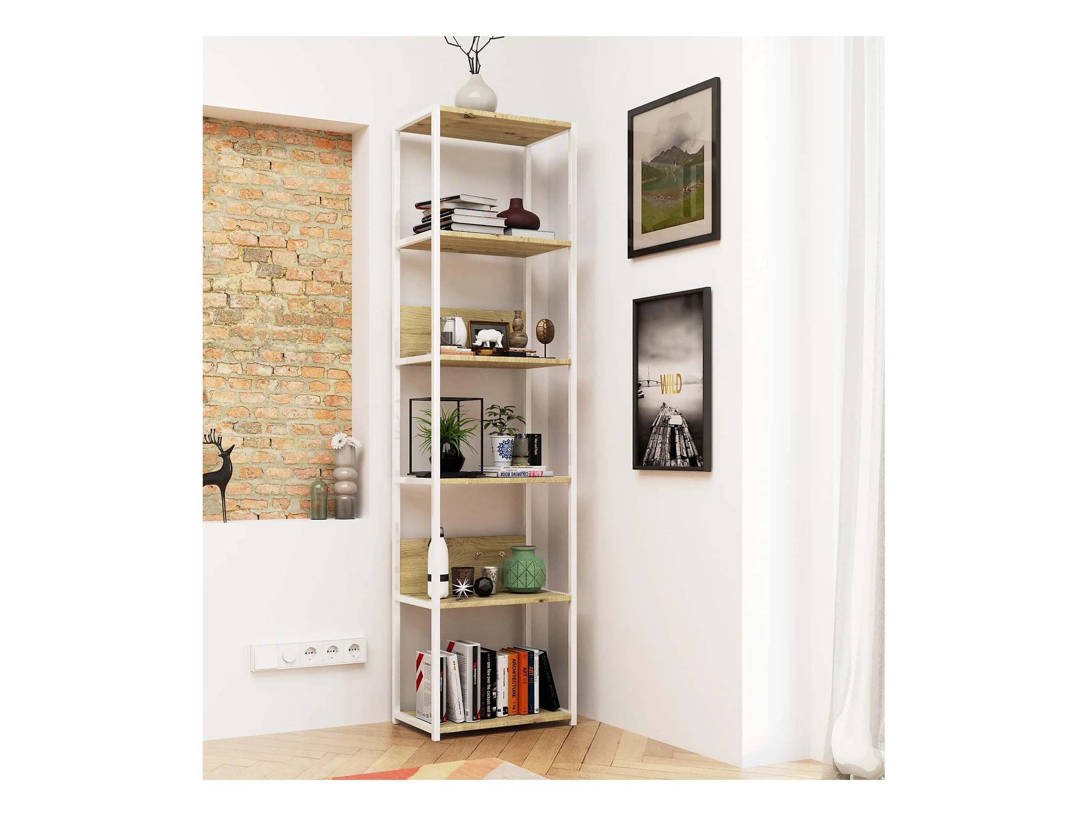 Étagère murale industrielle AKORD Blanche - Chêne Artisan 50 cm 6 étagères 50x32x192 cm