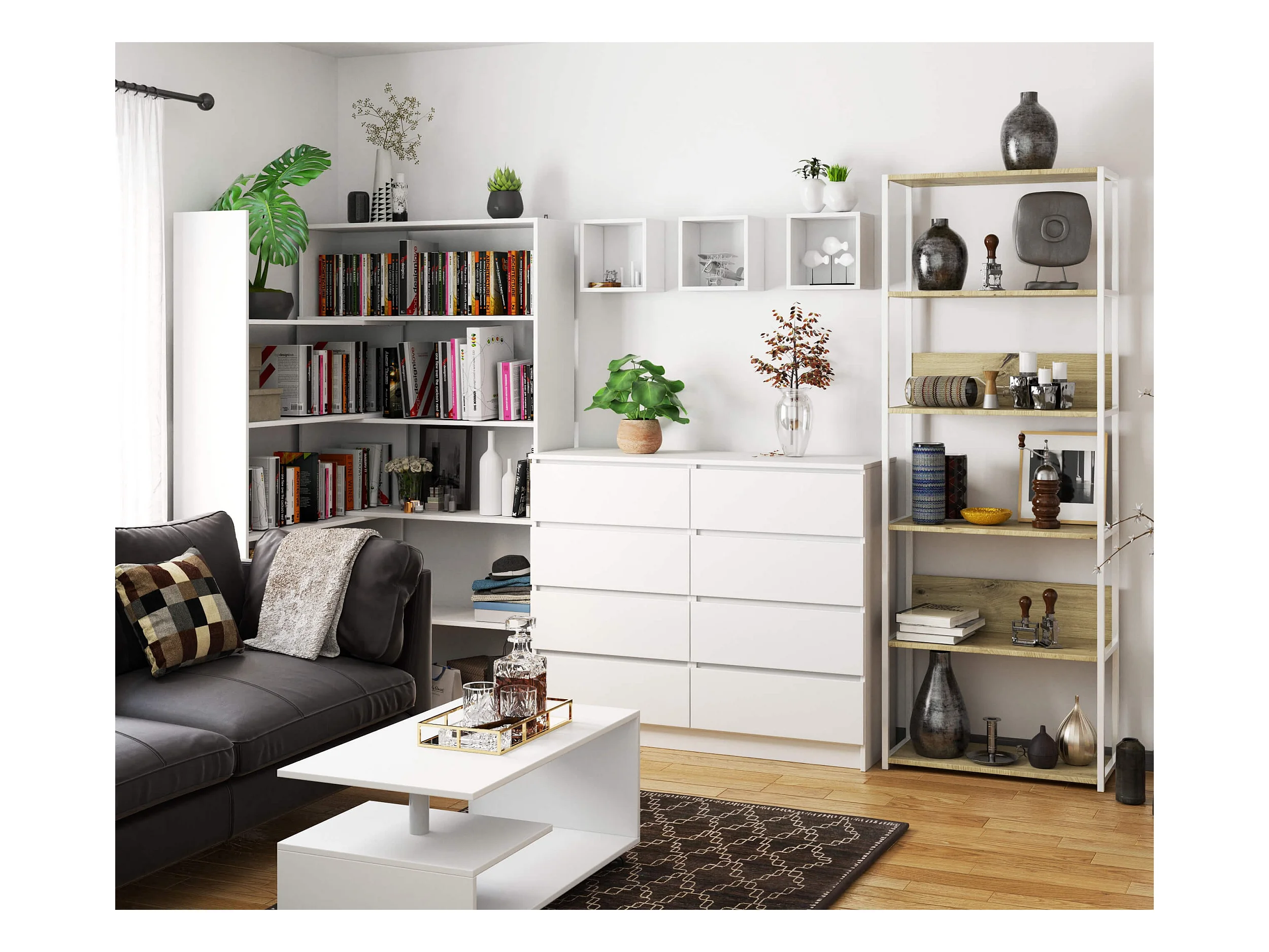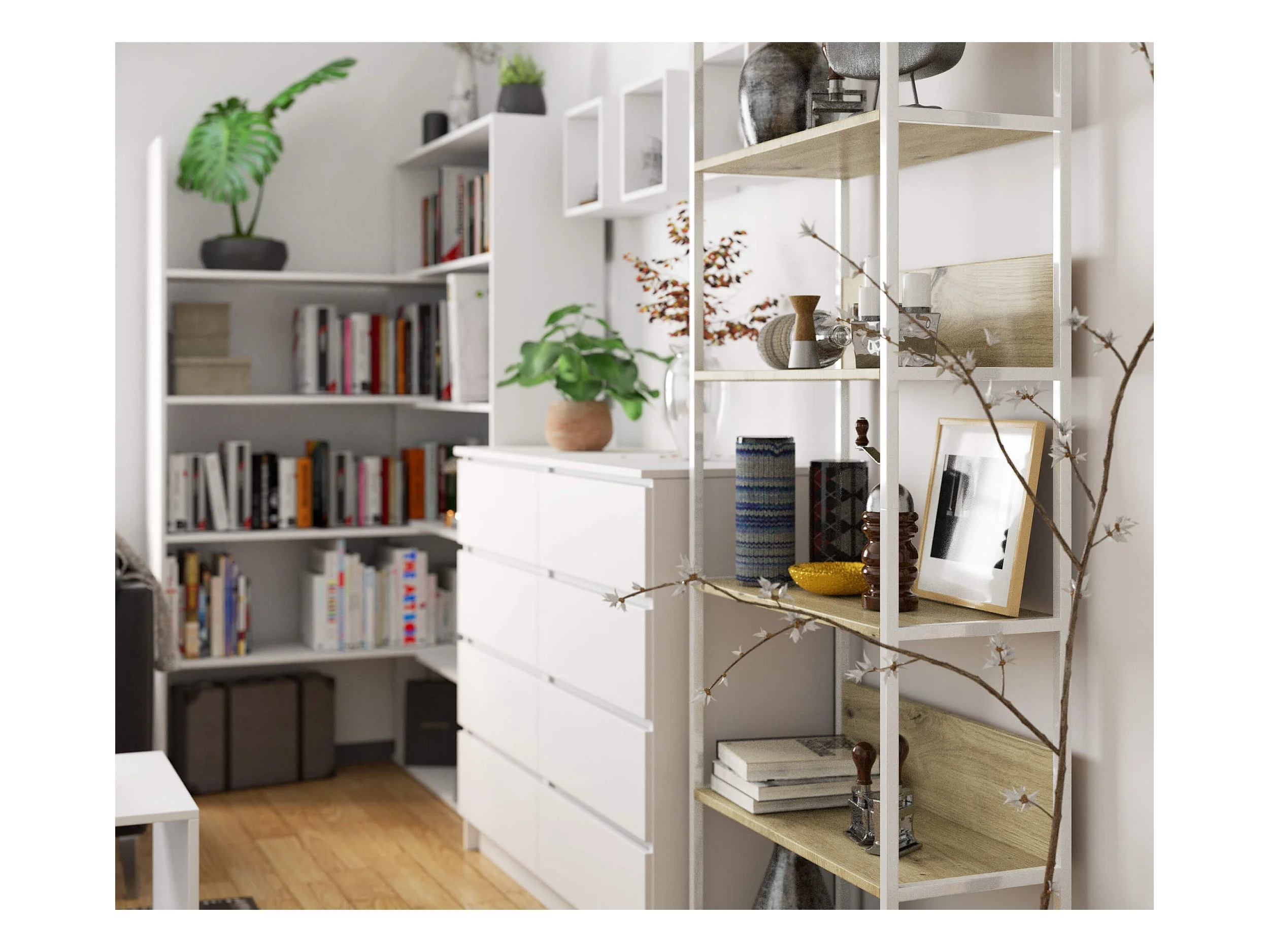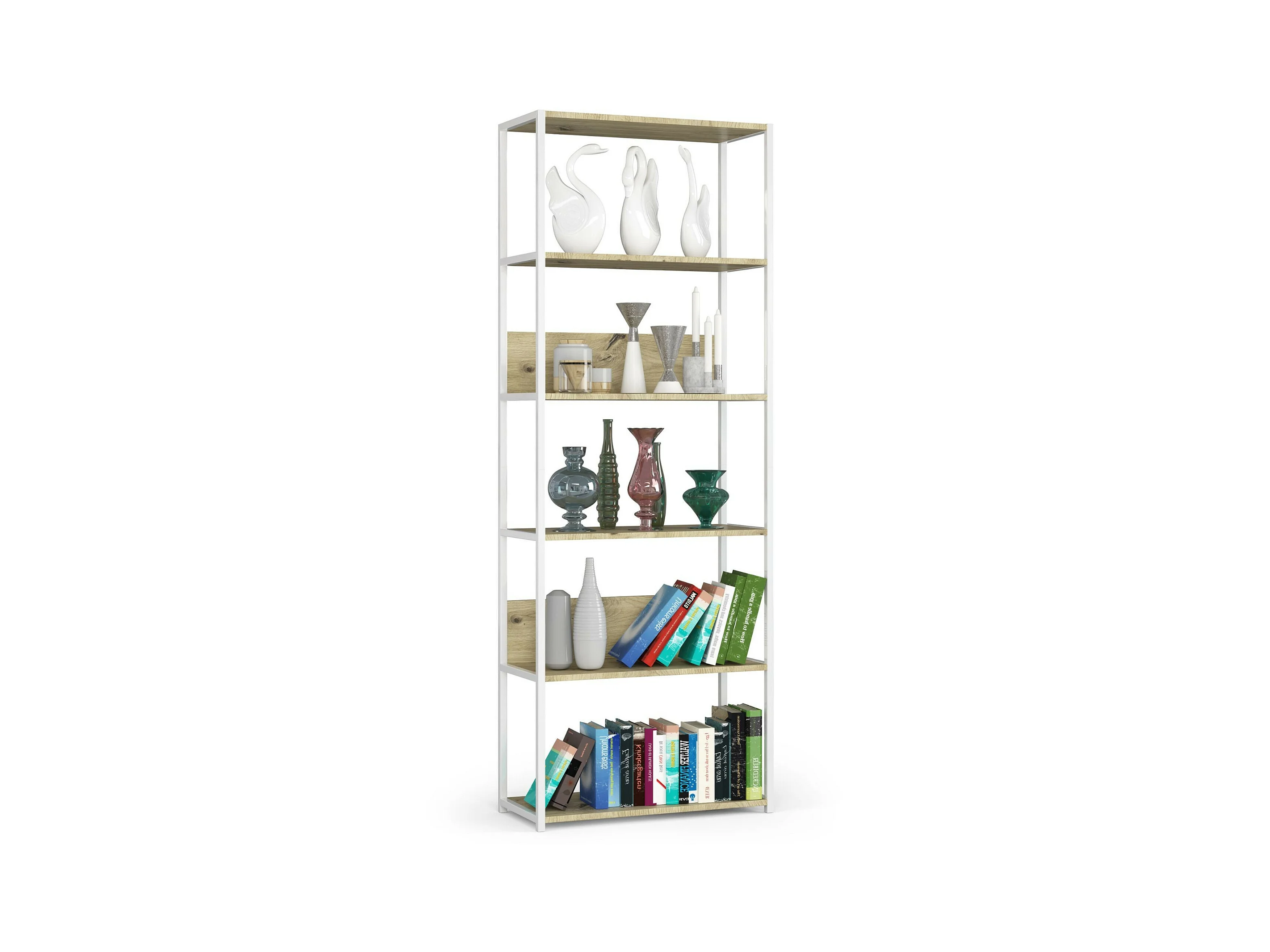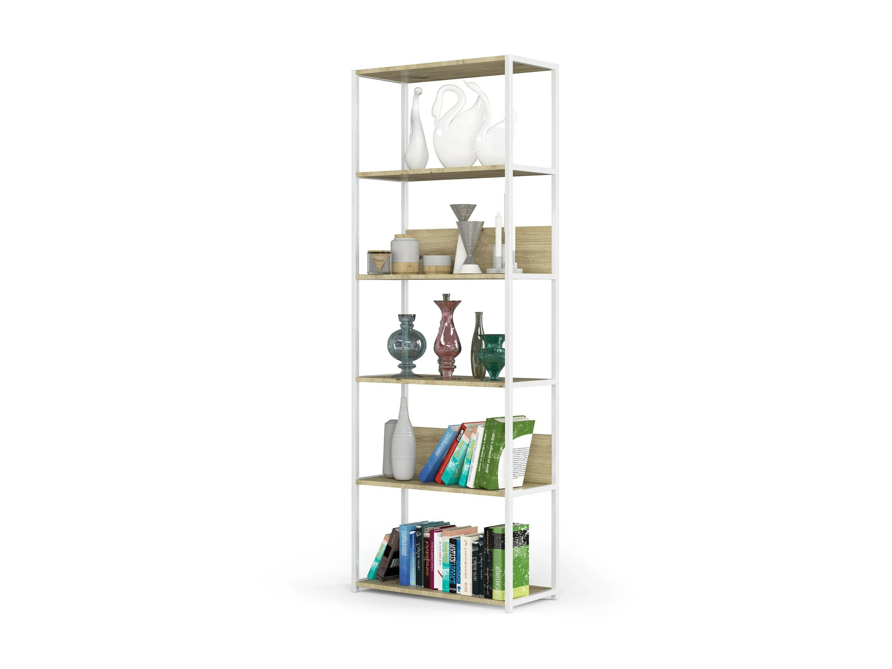 Étagère murale industrielle AKORD Blanche - Chêne Artisan 70 cm 6 étagères 70x32x192 cm