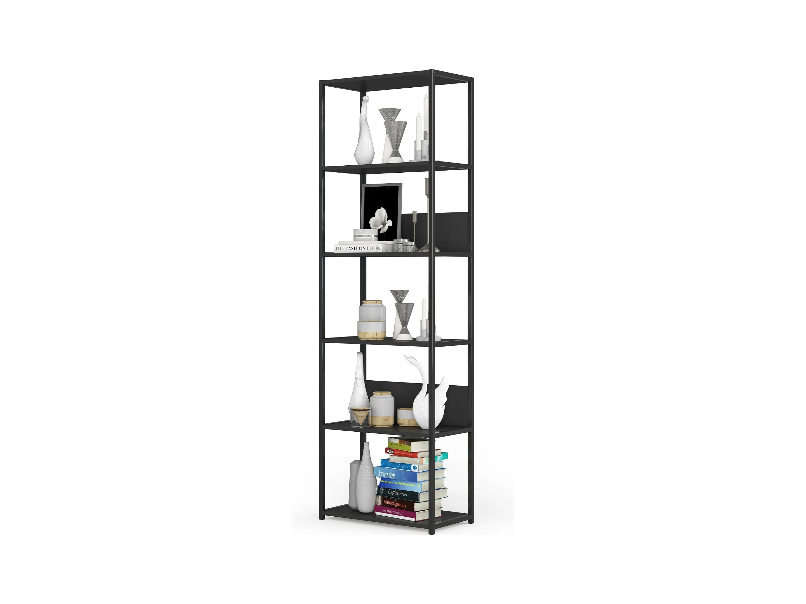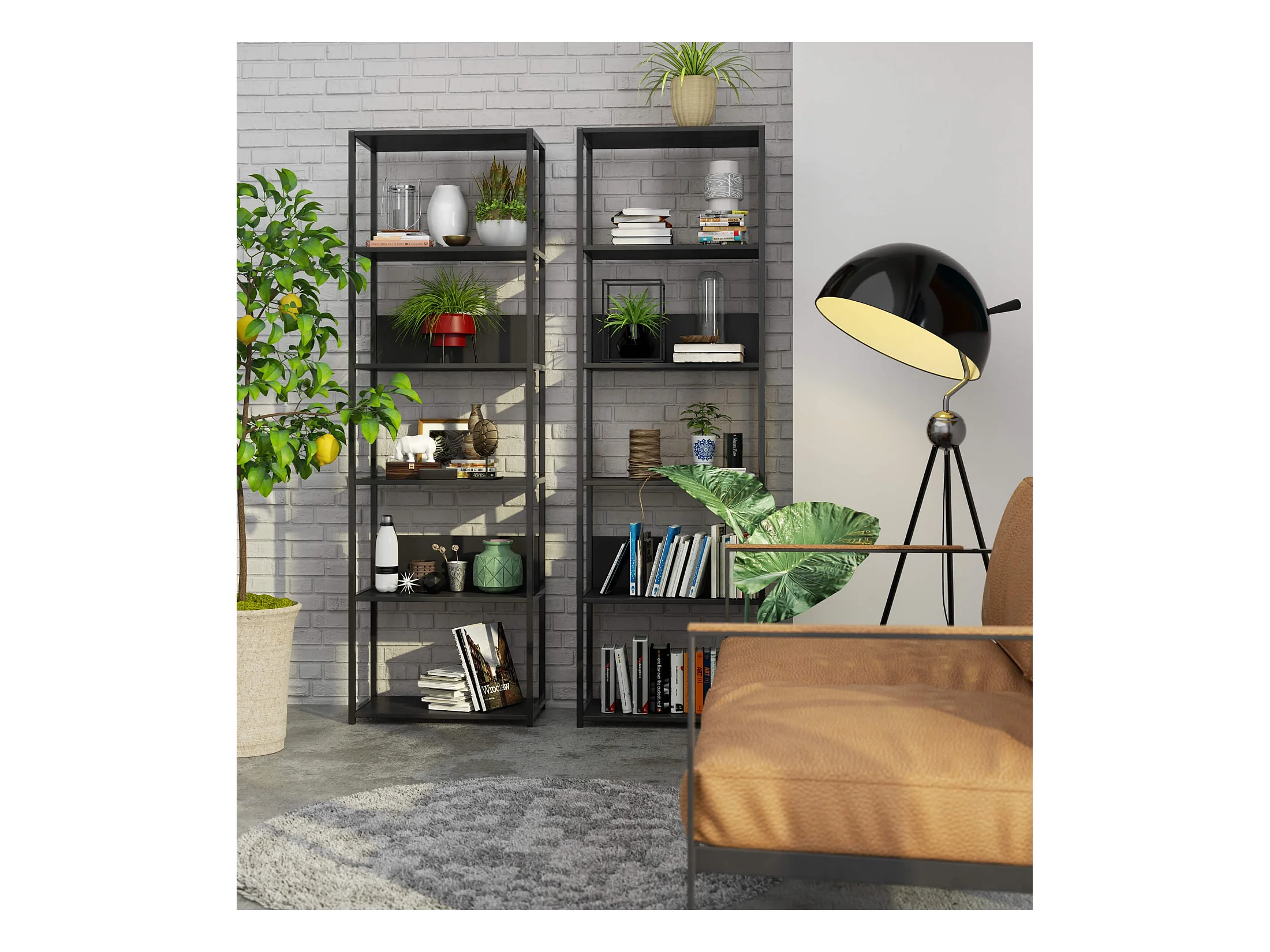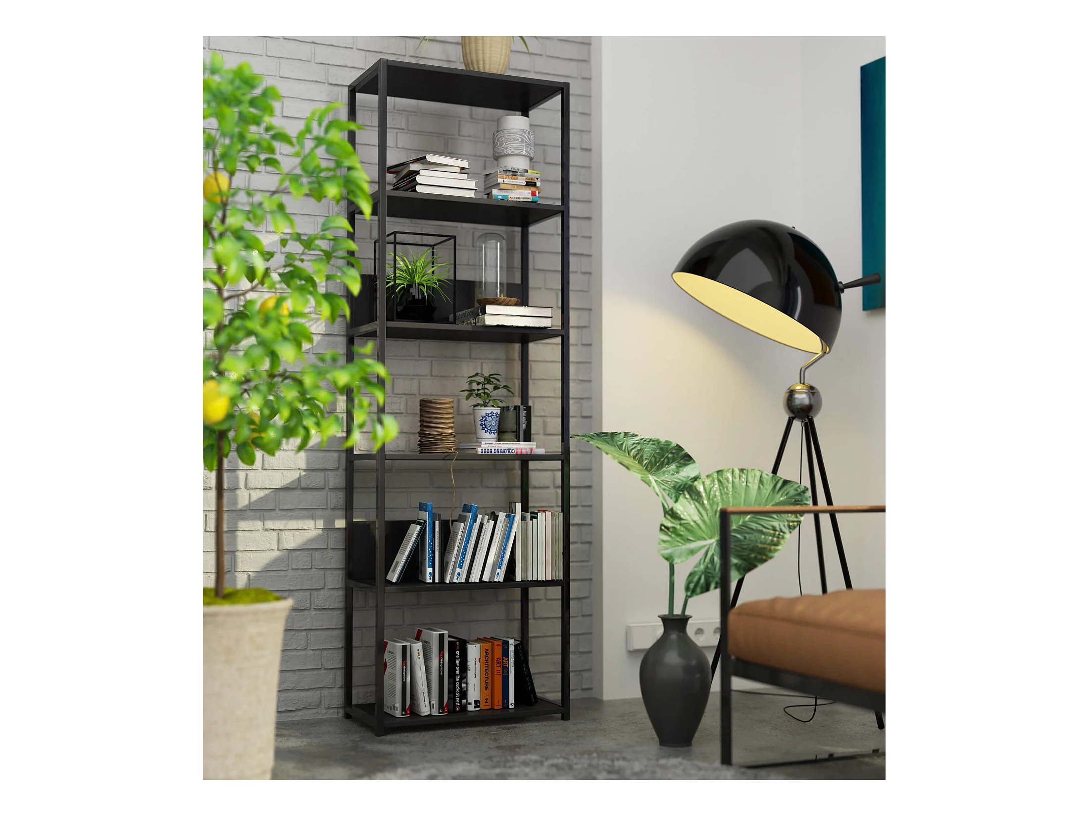 VOLLRAD - Etagère 5 Plateaux Acier Noir et Bois Naturel