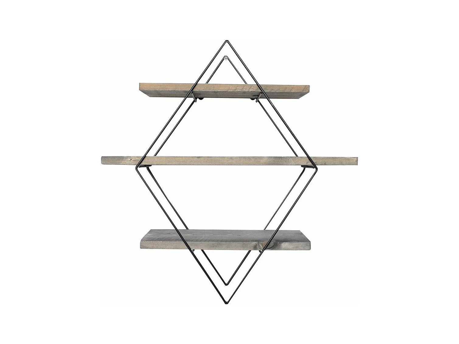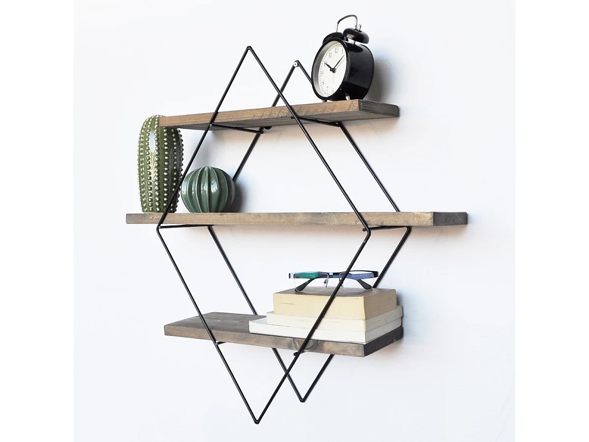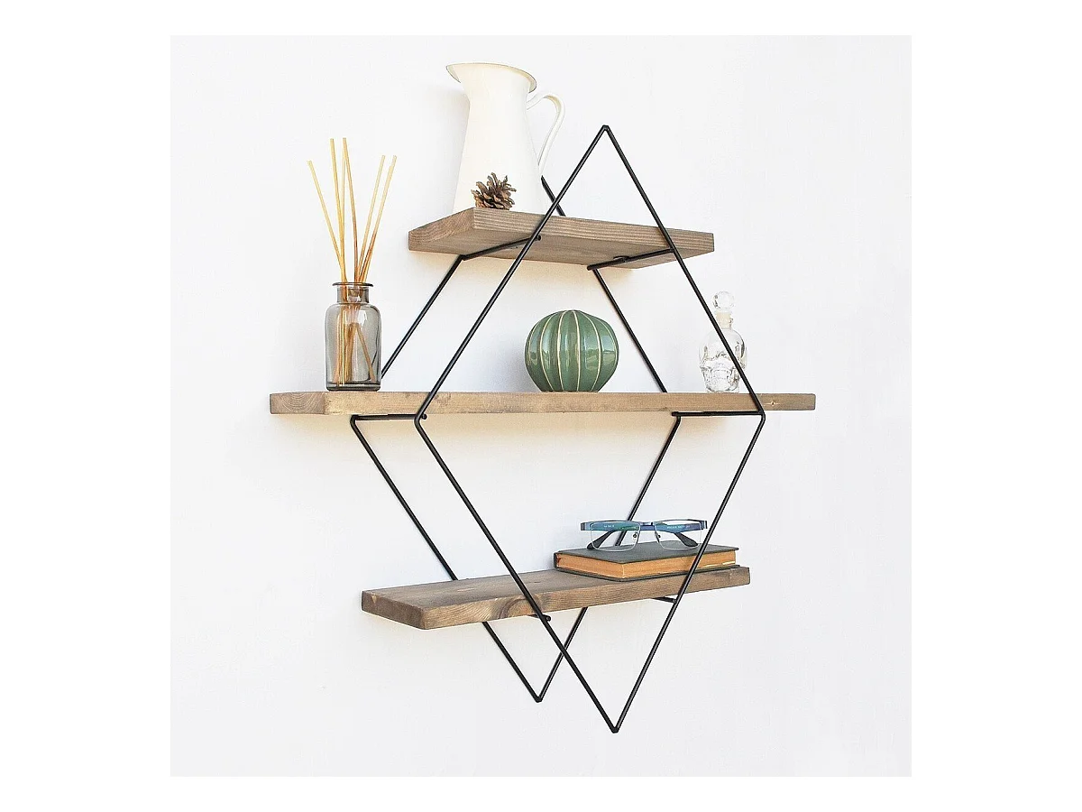 Etagère murale géométrique en métal noir et bois massif L60 cm