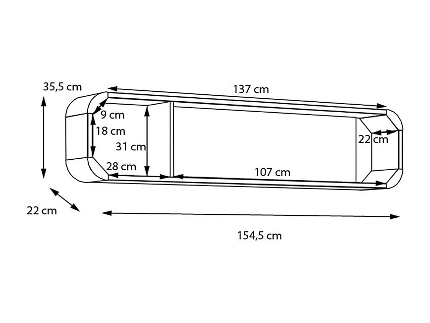 Étagère murale réversible L. 155 cm décor chêne angles arrondi - VIVIAN