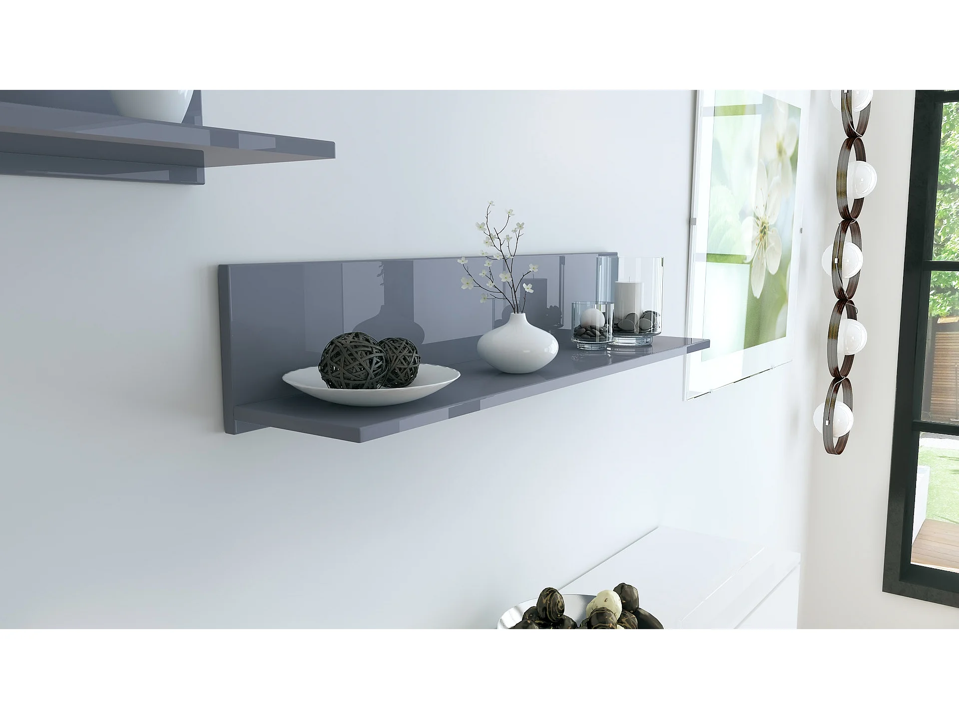 Étagère murale Skadu, Tablette murale avec surface de rangement, gris haute brillance (97,5 x 18,5 x 18,5 cm)