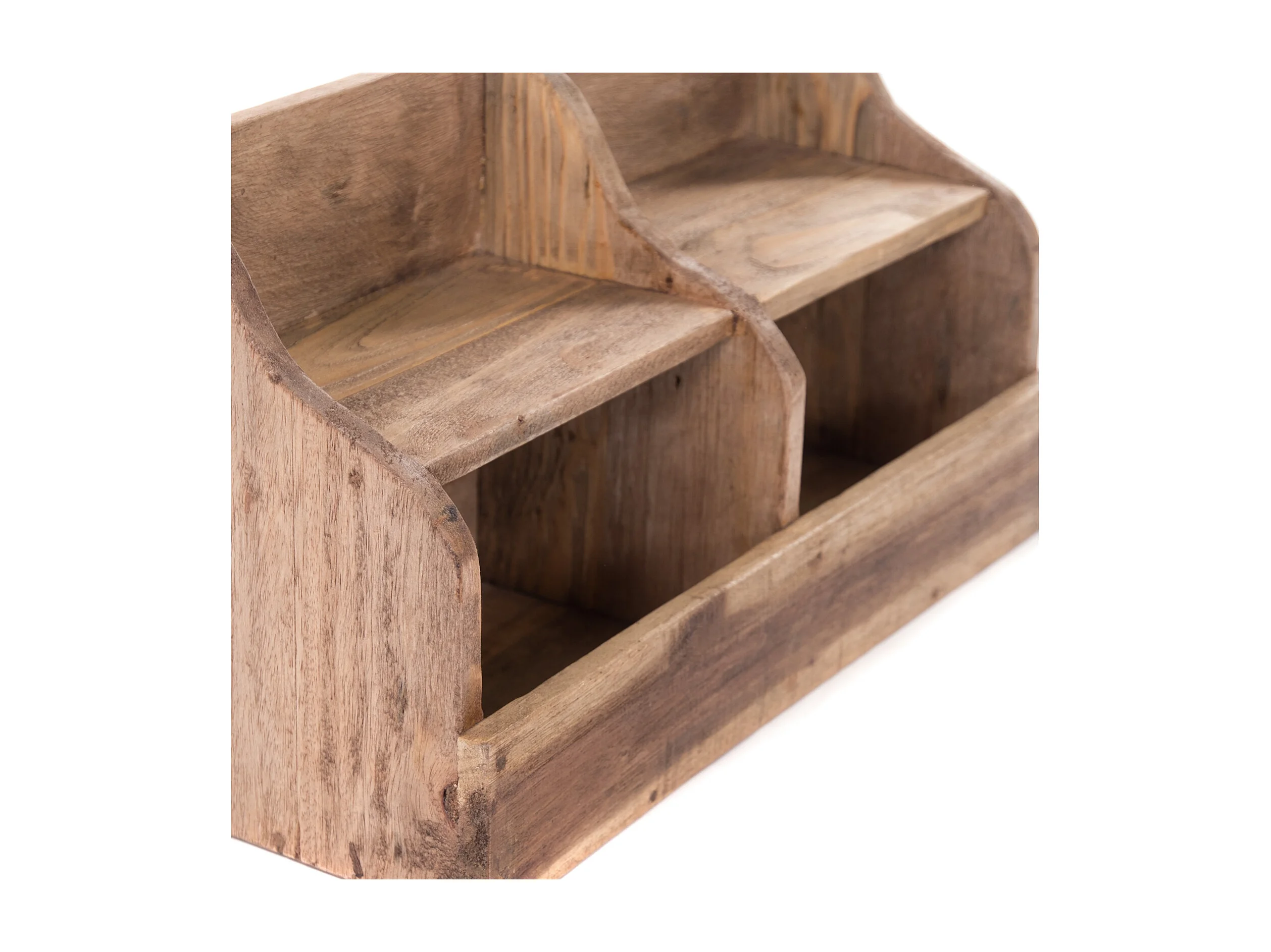 ÉTAGÈRE MURALE Adélia Bois massif de mahogany, 2 niveaux, 3 tiroirs couleurs naturelles