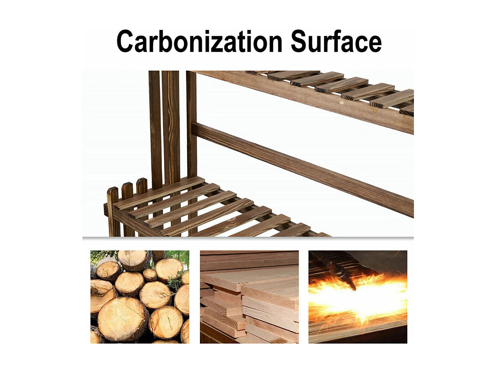 Étagère à fleurs en bois - porte plante bois 6 tablettes - dim. 98L x 28l x 95H cm - bois de sapin traité carbonisation