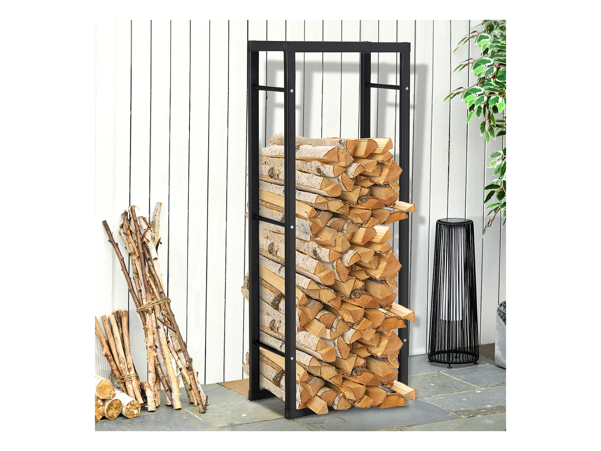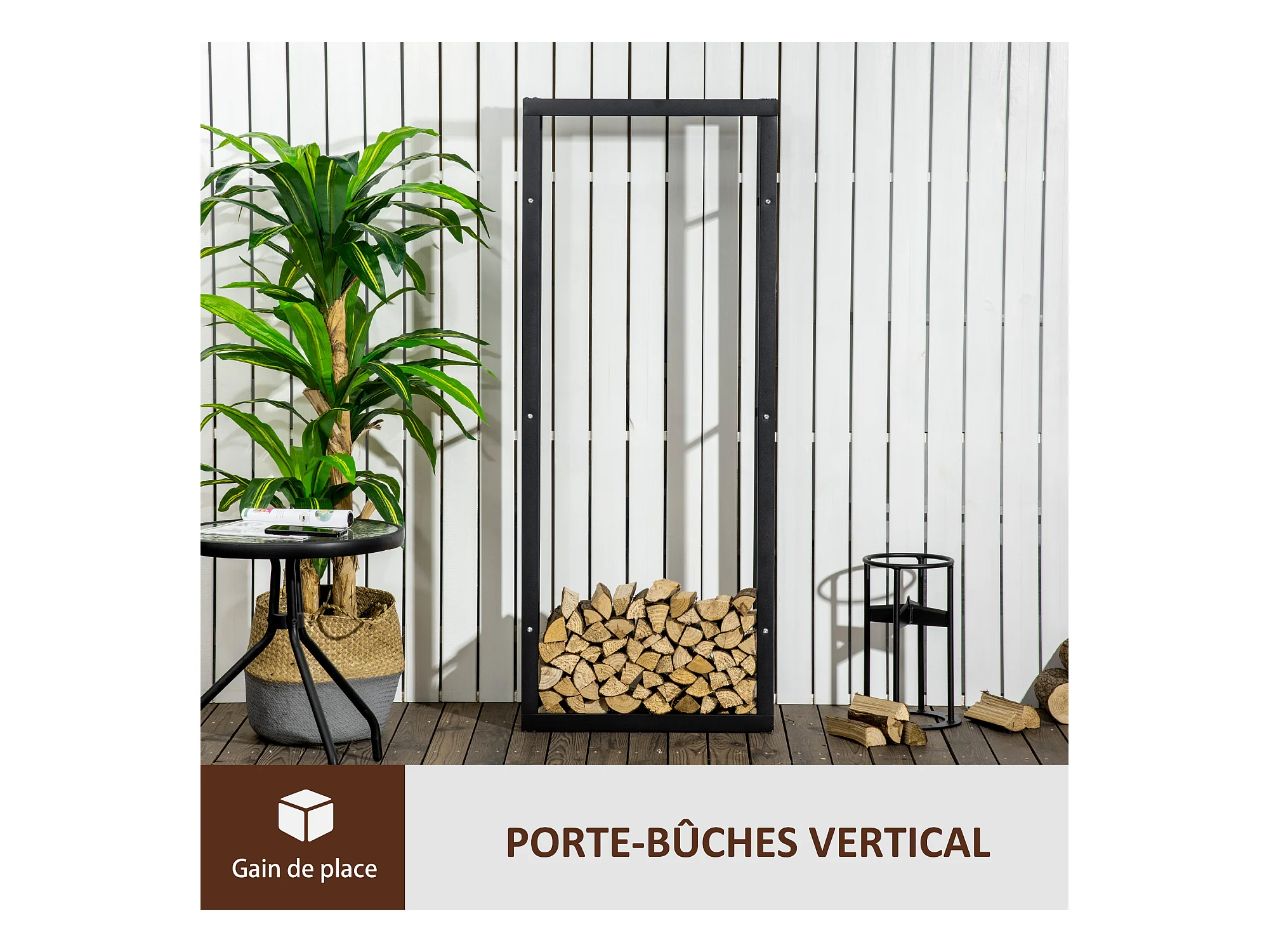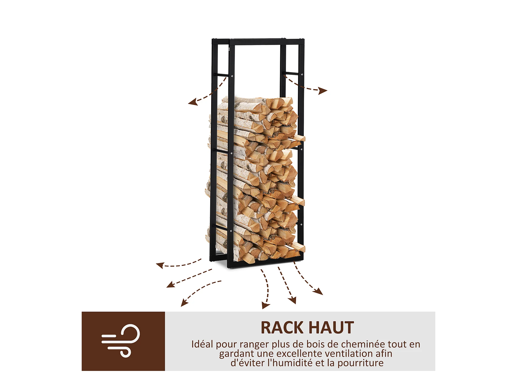 Etagère porte bois de cheminée porte-bûches design contemporain charge max. 100 Kg dim. 60L x 25l x 150H cm métal noir
