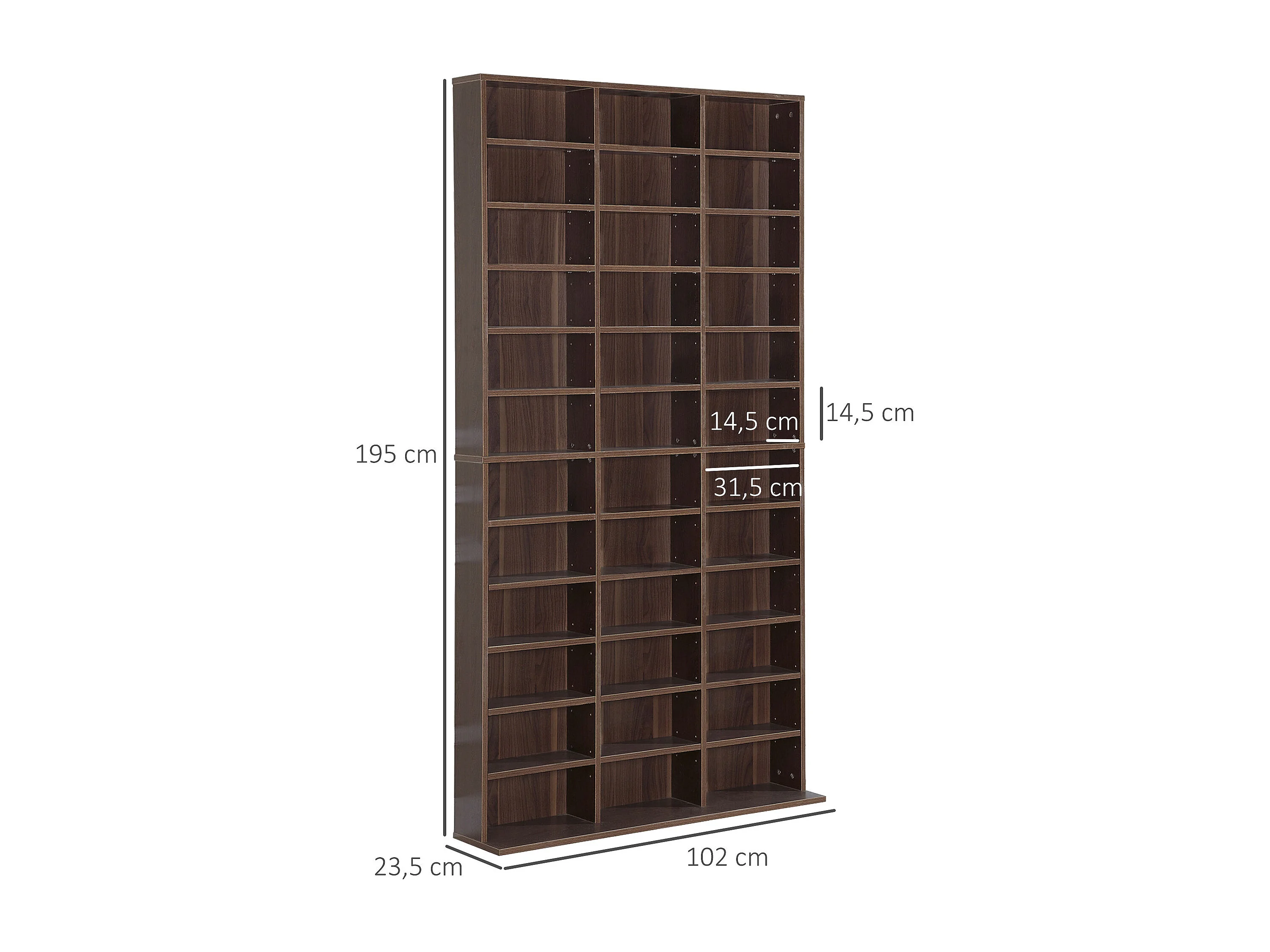 Étagère rangement CD/DVD meuble de rangement pour 1116 CDs 33 compartiments réglables en hauteur 102 x 24 x 195 cm marron