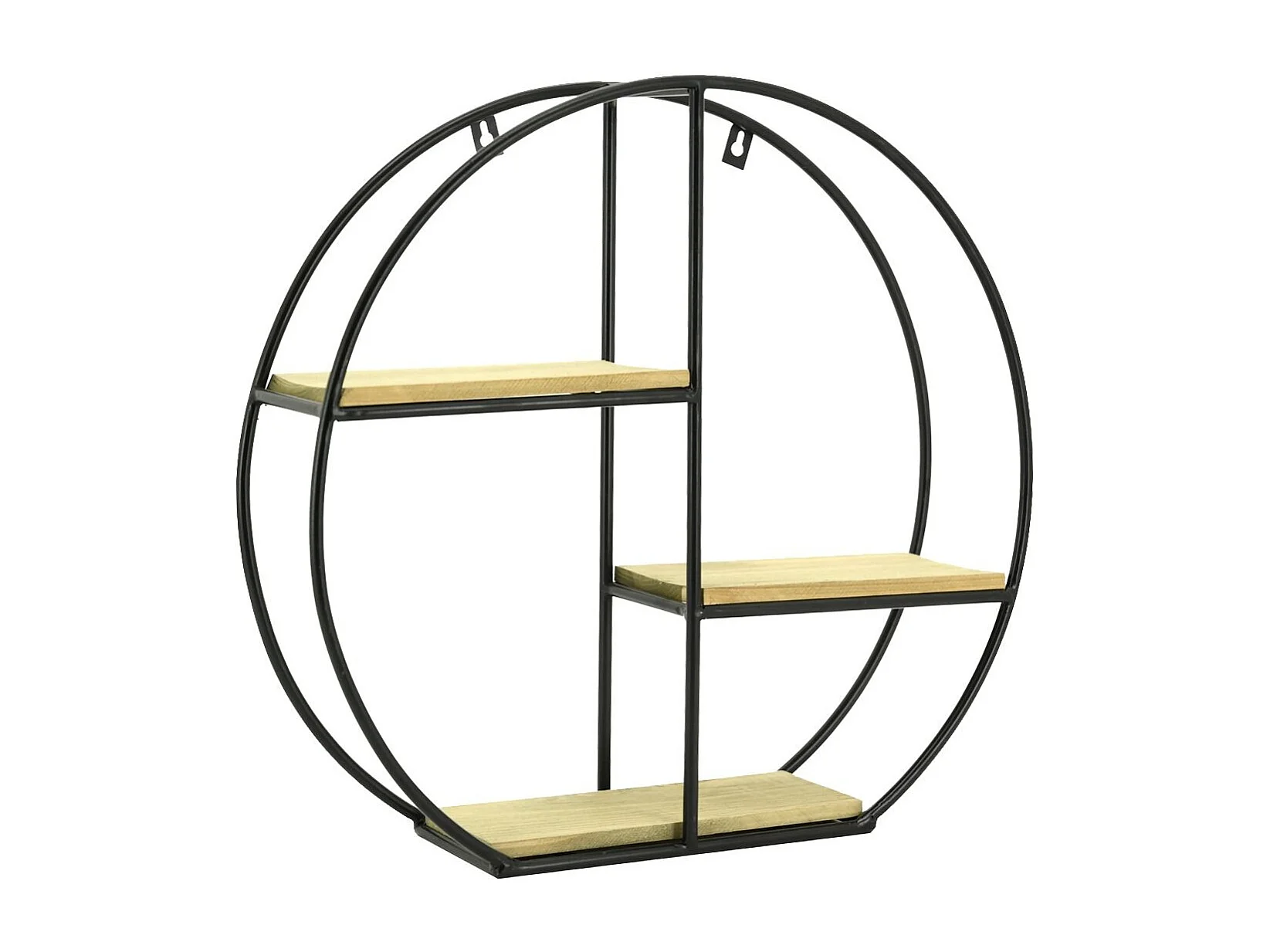 Étagère ronde murale en métal et pin