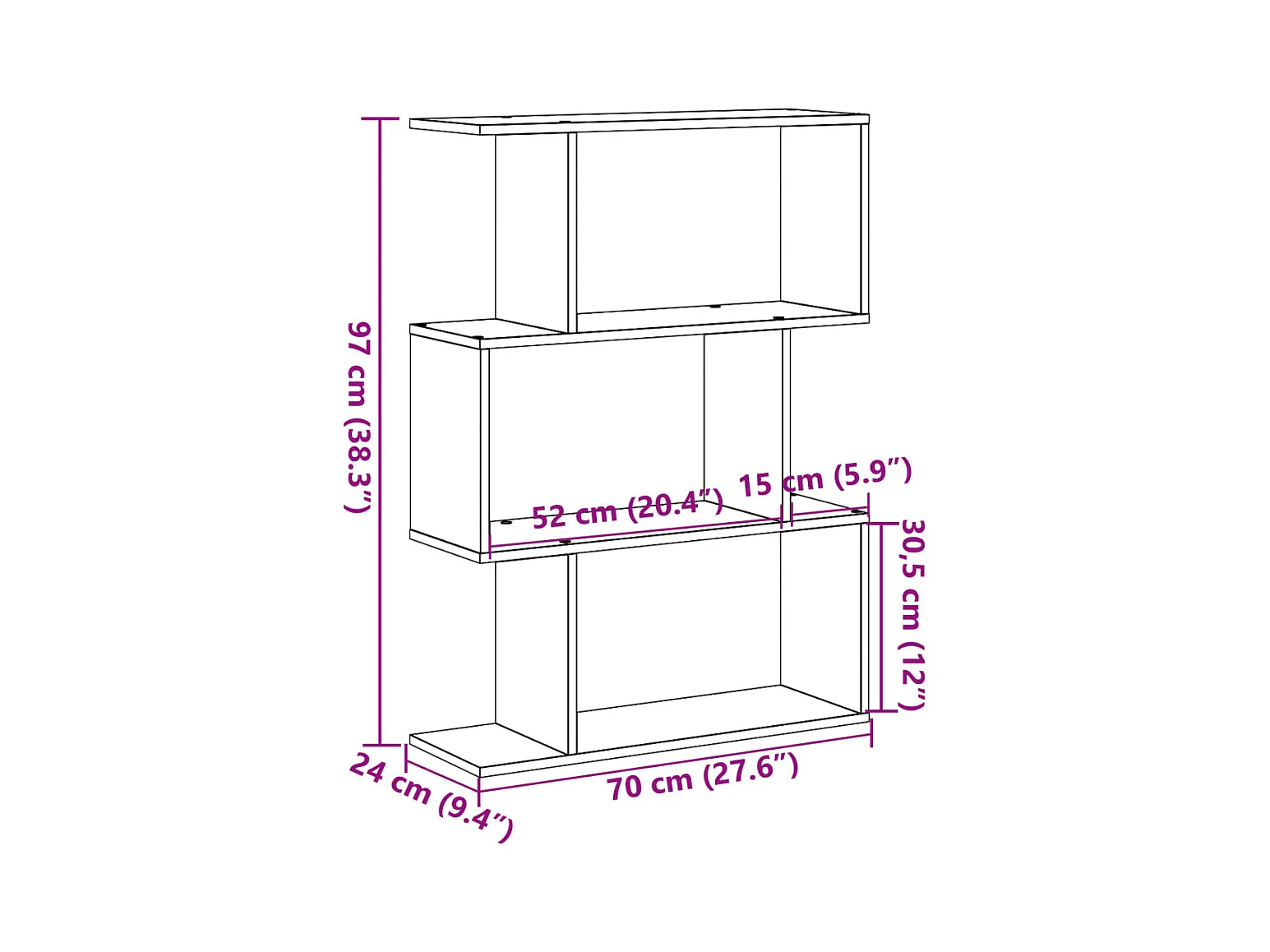 Étagère séparatrice de pièce à 3 niveaux chêne fumé 70x24x97 cm