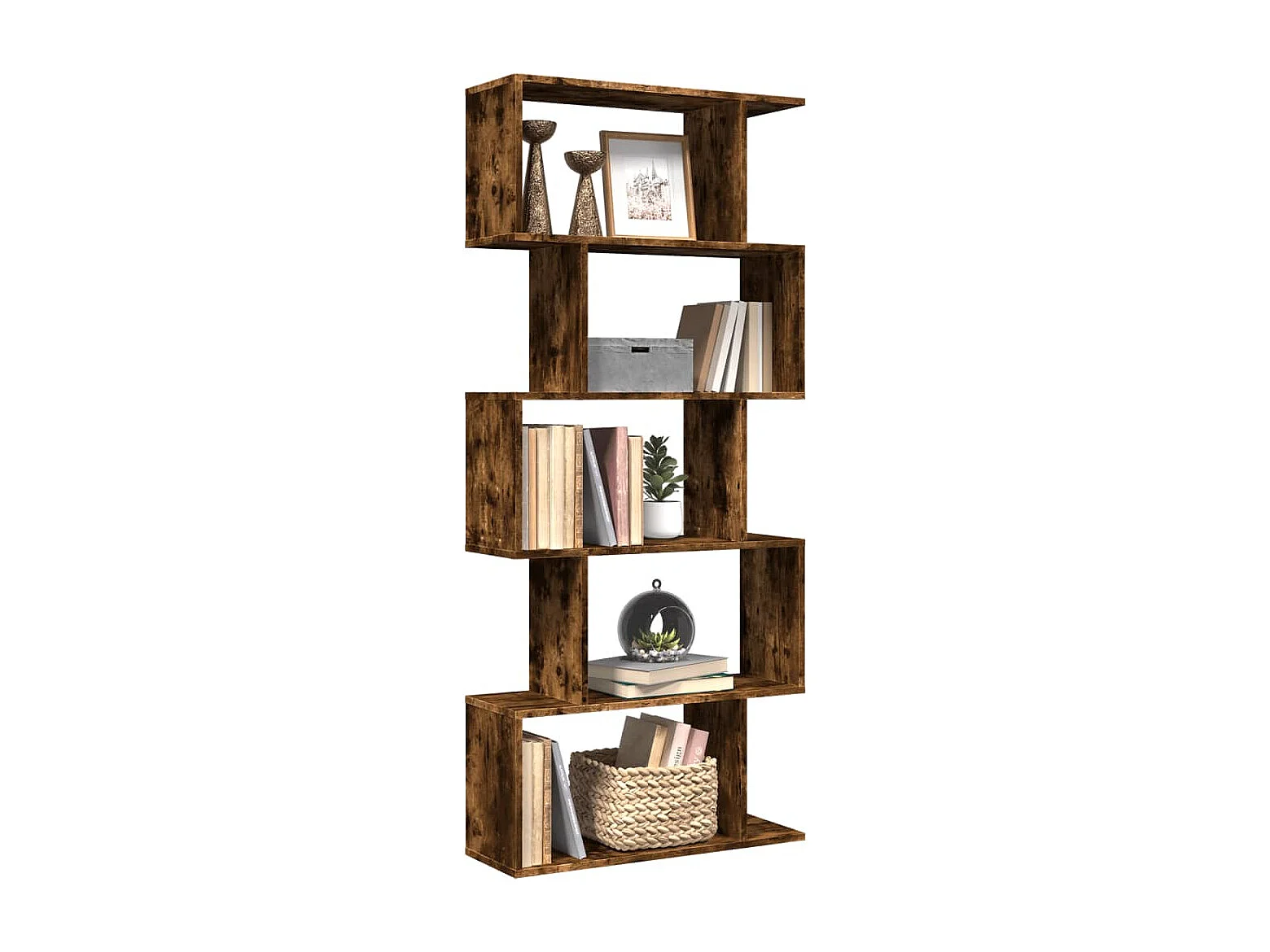 Étagère séparatrice de pièce à 5 niveaux chêne fumé 70x24x161cm